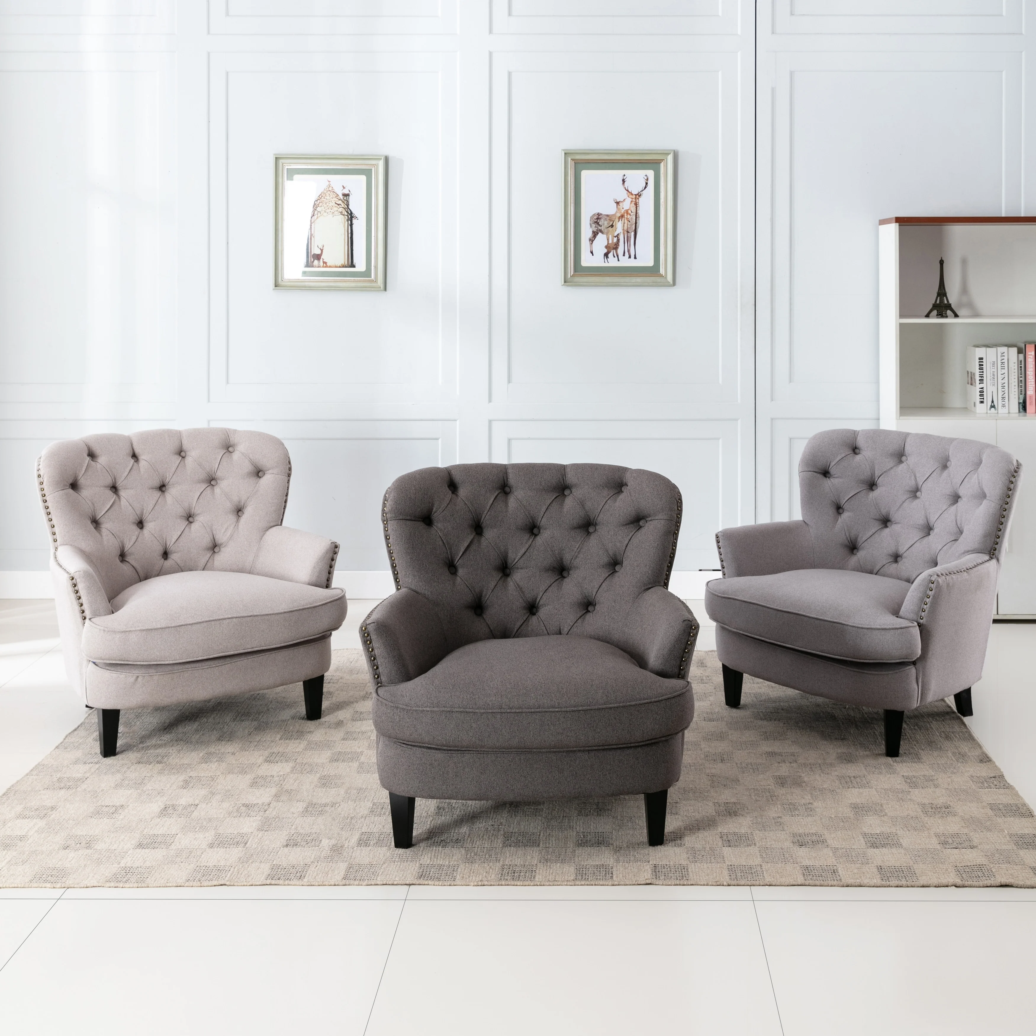 Corvus Cervine Tufted Linen Oversized Accent Club Chair