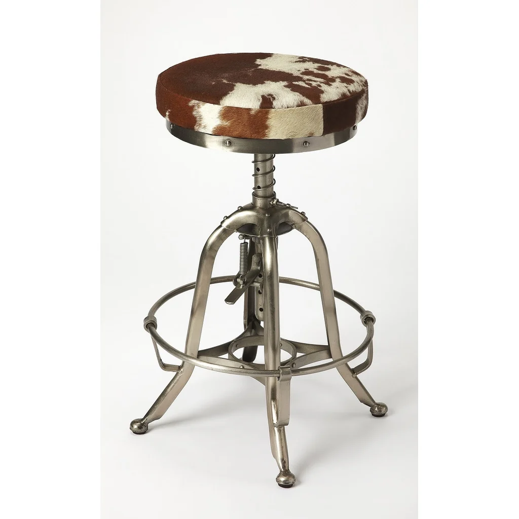 Cream Upholstered Black Base Adjustable Swivel Bar Stool