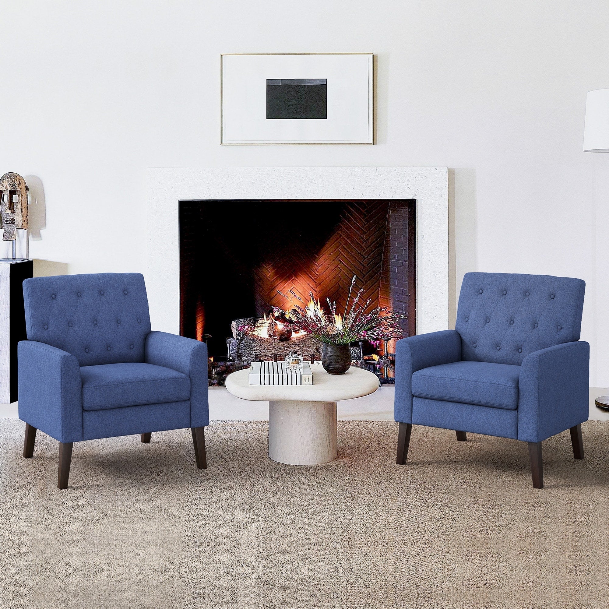 Beige 28.25 Button Tufted Chair with Ottoman