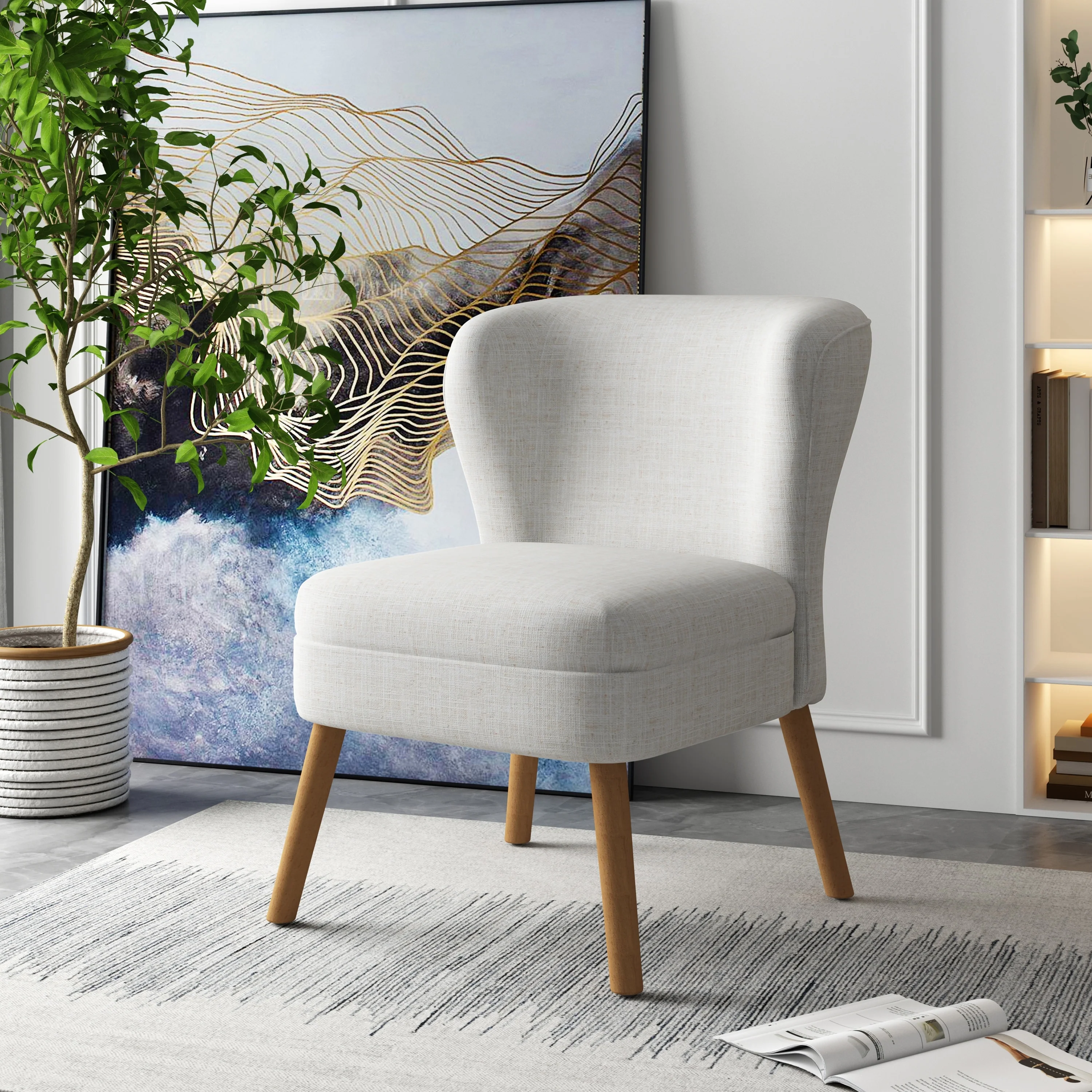 Upholstered Accent Chair Armchair Linen Side Chair