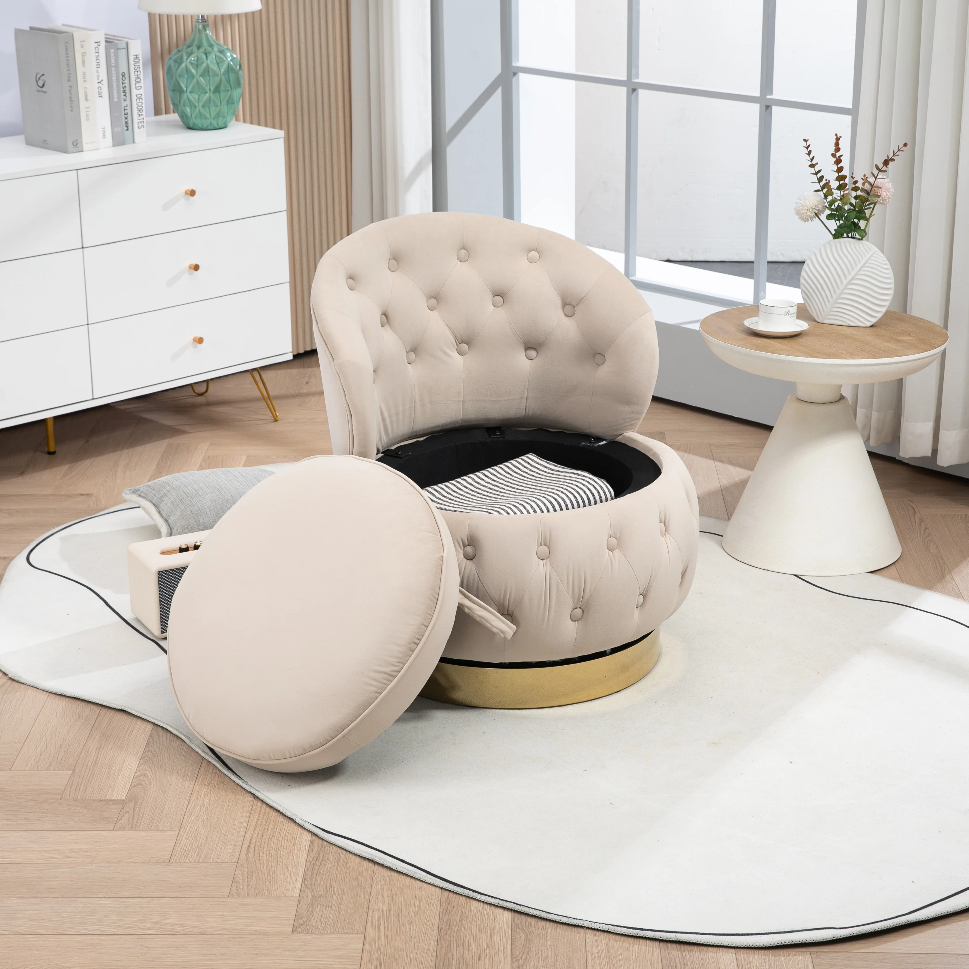 Velvet Fabric 360 Degree Swivel Tufted Storage Barrel Chairs