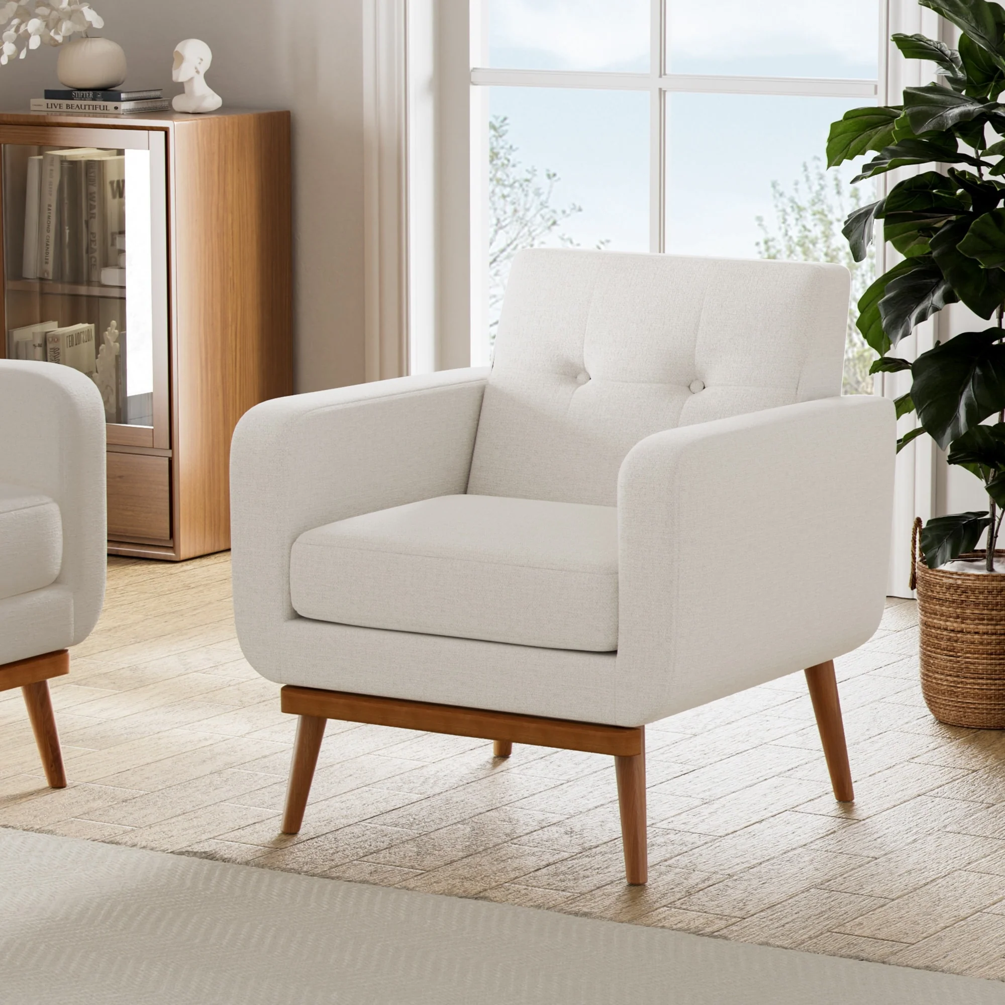 Tufted-Fabric-Upholstered-Accent Chair