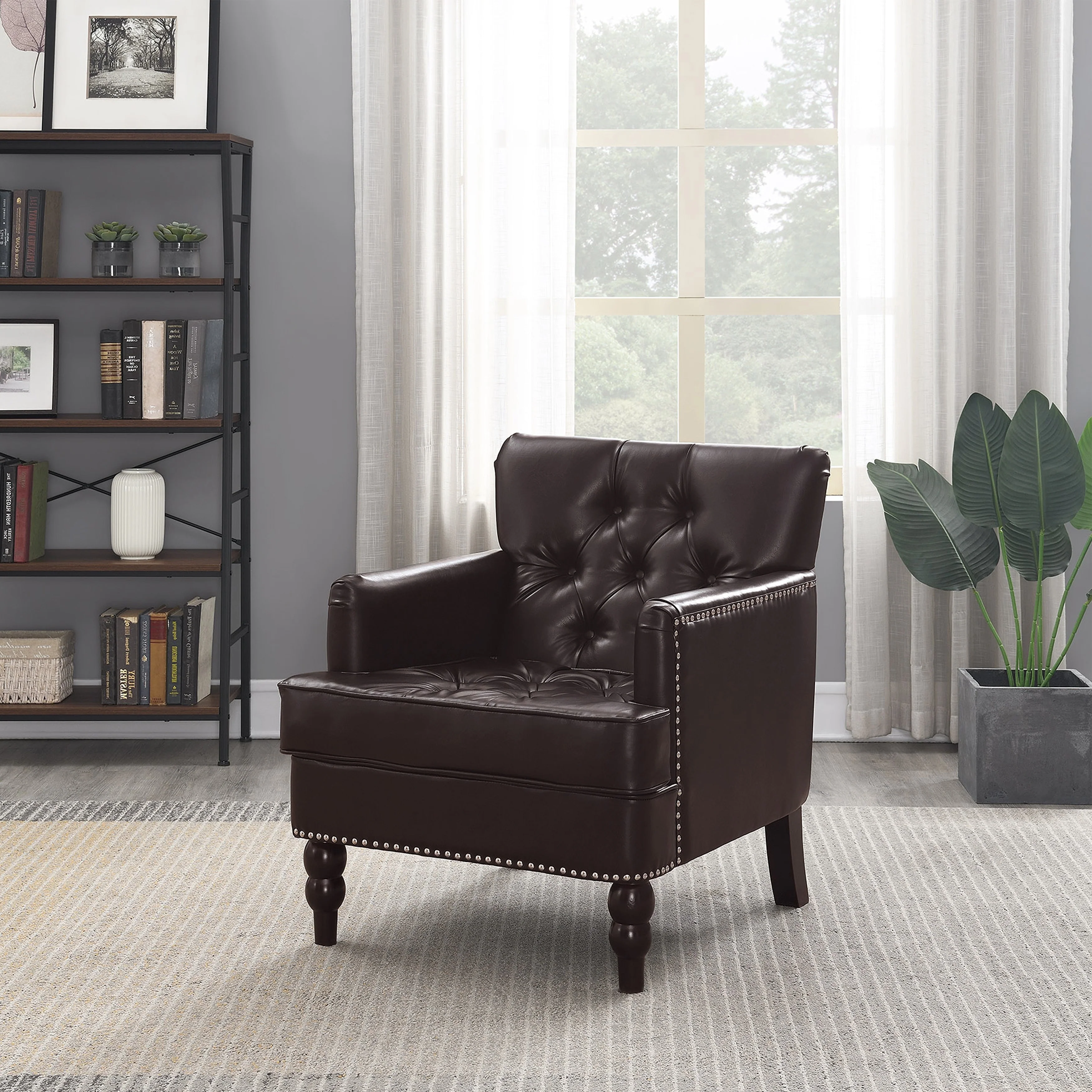 Leather Accent Chair Upolstered Tufted Club Chair with Wood Leg