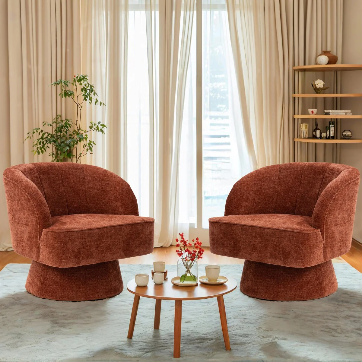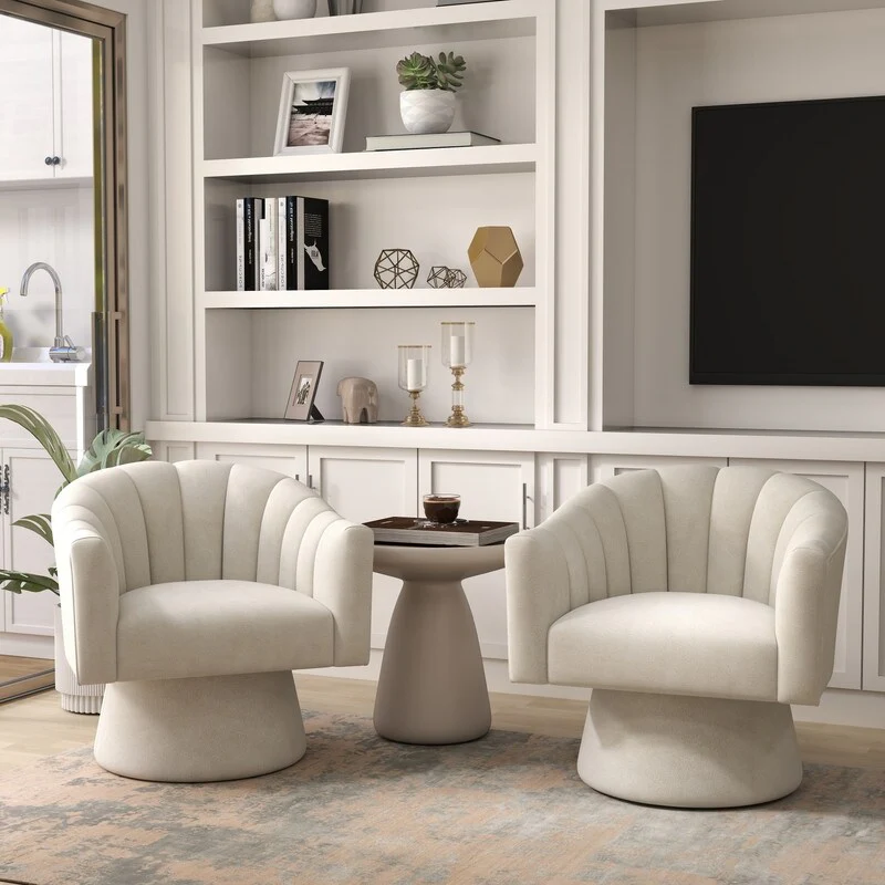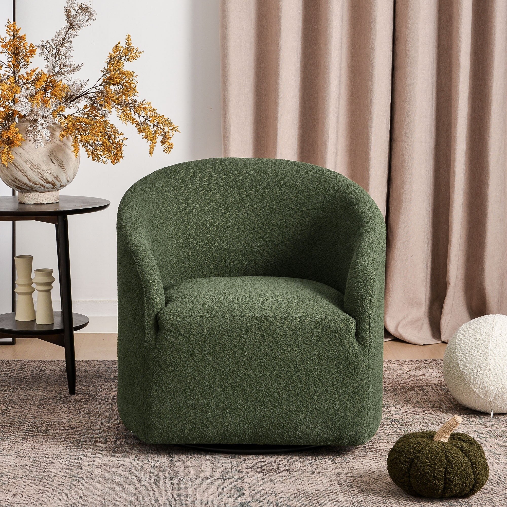 KINWELL 32W Boucle Upholstered Swivel Barrel Accent Armchair