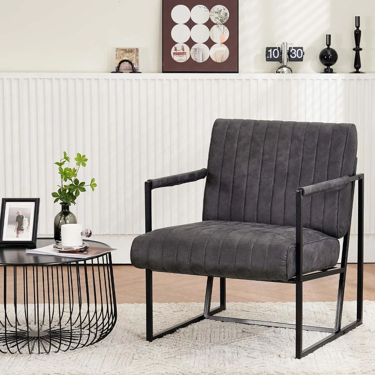 Art Leon IndustrIal Retro Top Grain Leather & Aluminum Accent Chair