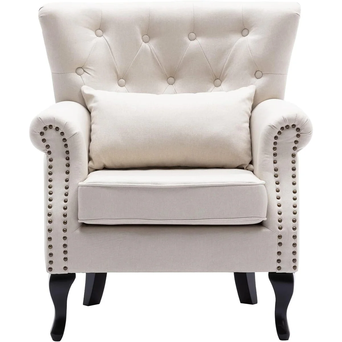 Comfy Tufted Single Sofa Chair Wingback Armchair with Pillow