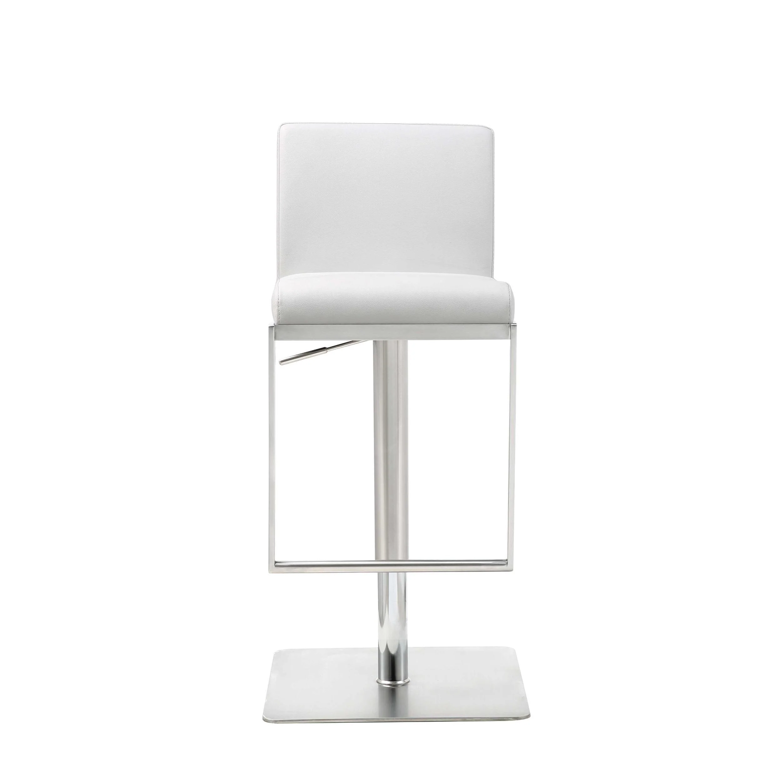 Sleek White Faux Leather Adjustable Bar Stool