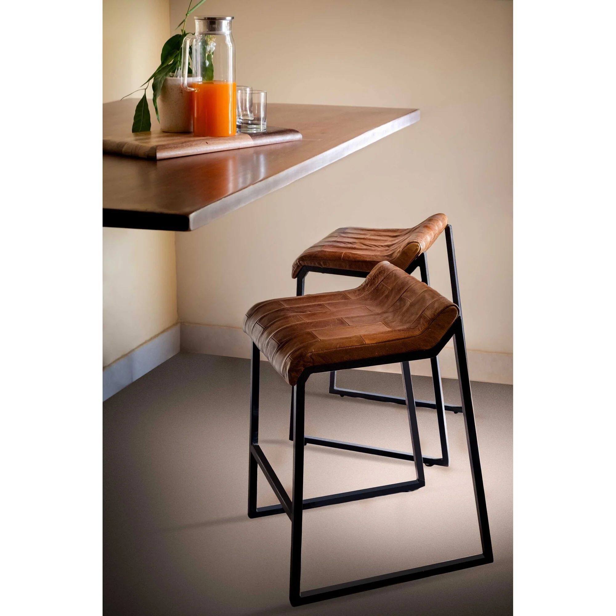 Modern Swatches Brown Leather Counter Stool
