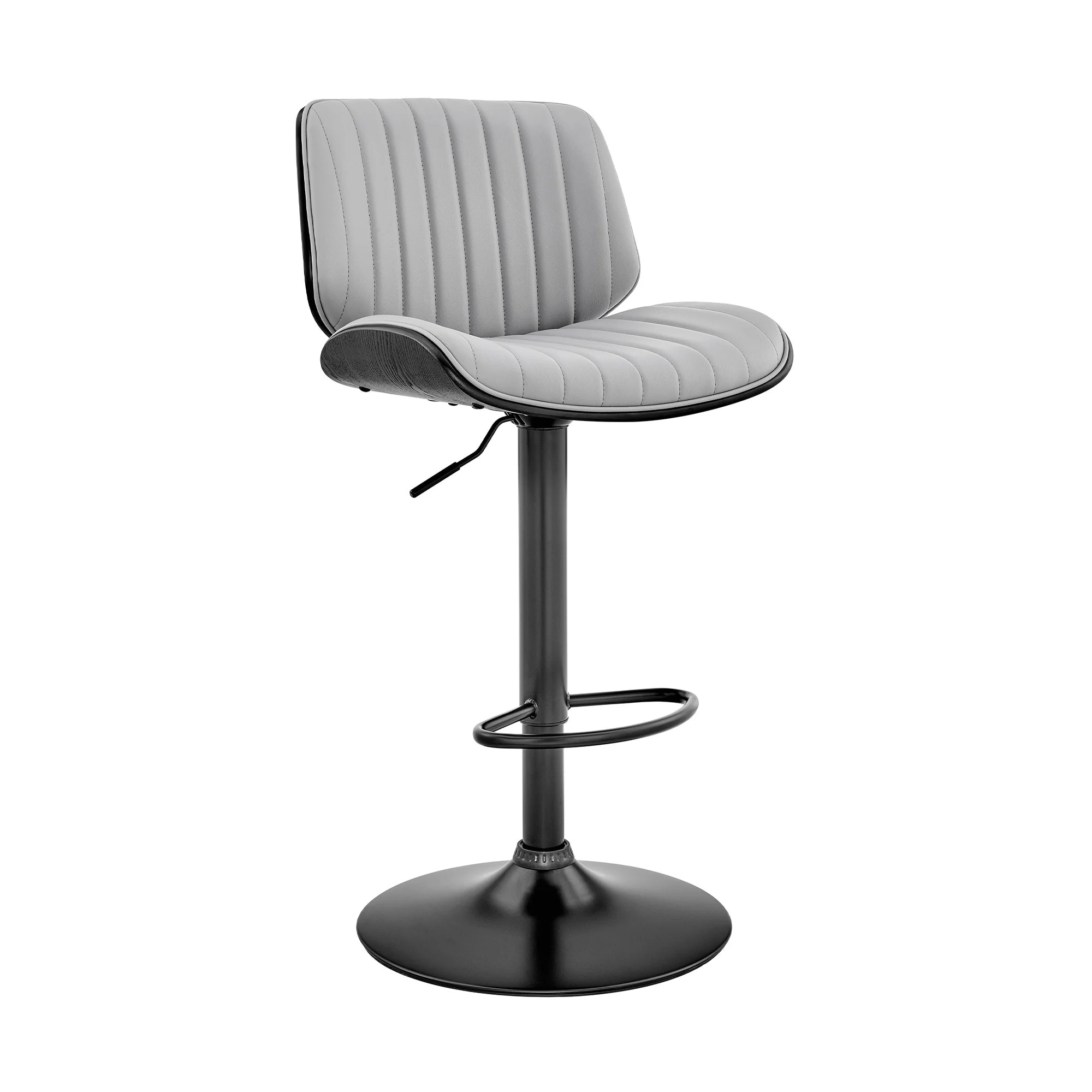 Adjustable Gray Faux Leather Black Steel and Wood Bar Stool
