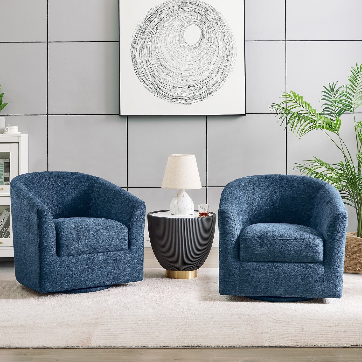 Cuenca Modern Upholstered Barrel Chair with Swivel Base Set of 2
