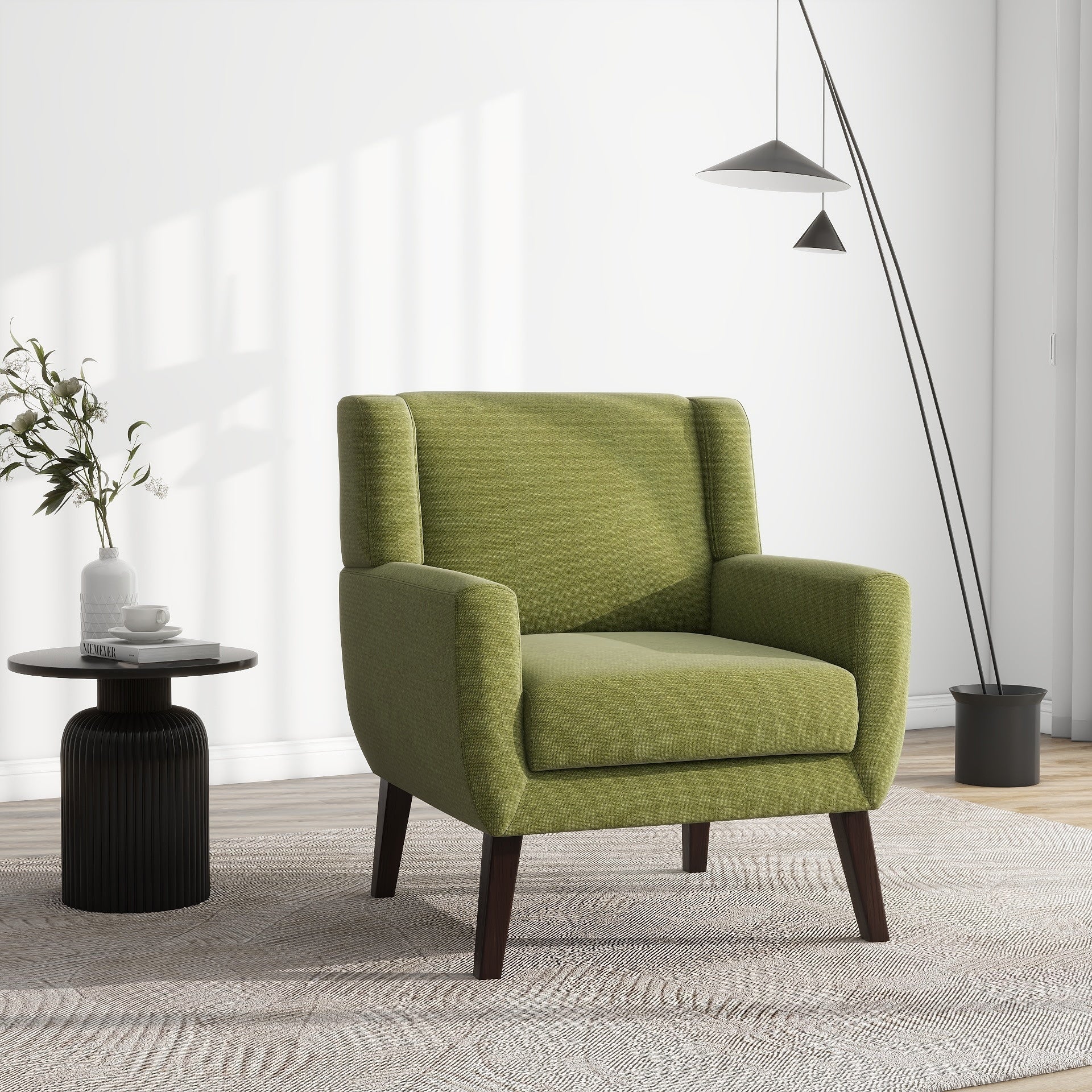 Modern Upholstered Linen Accent Chair Wingback Armchair