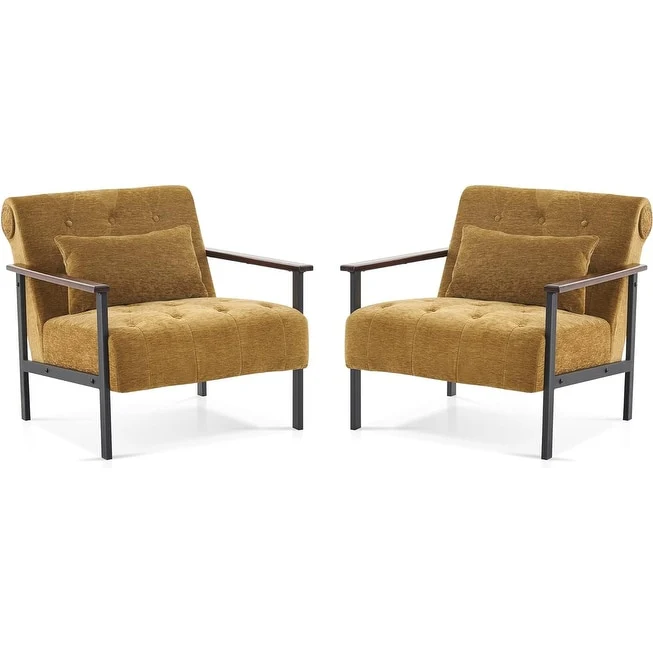 Chenille Upholstered Armchairs with Toss Pillow