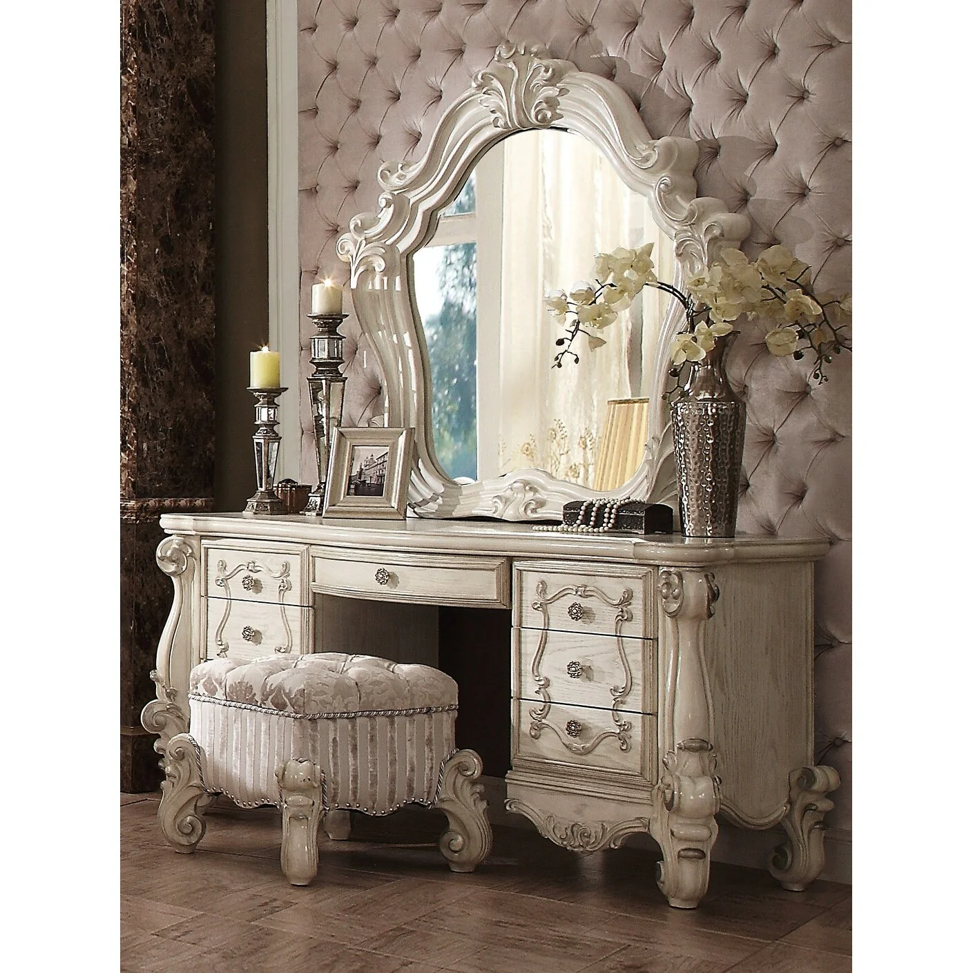 22 X 22 X 19 Ivory Fabric Vanity Stool