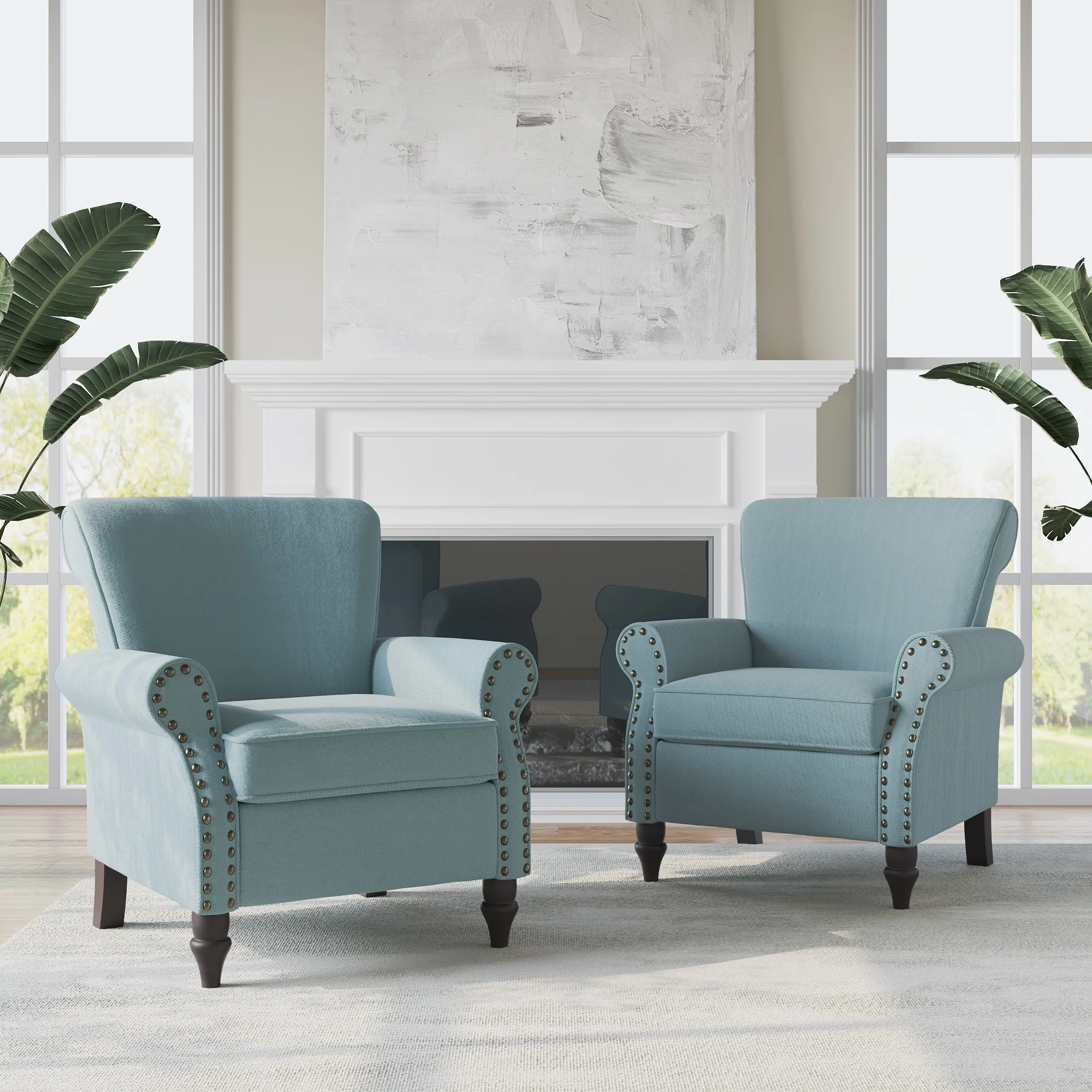 Mid-Century Modern Accent Chairs with Nailhead Trim