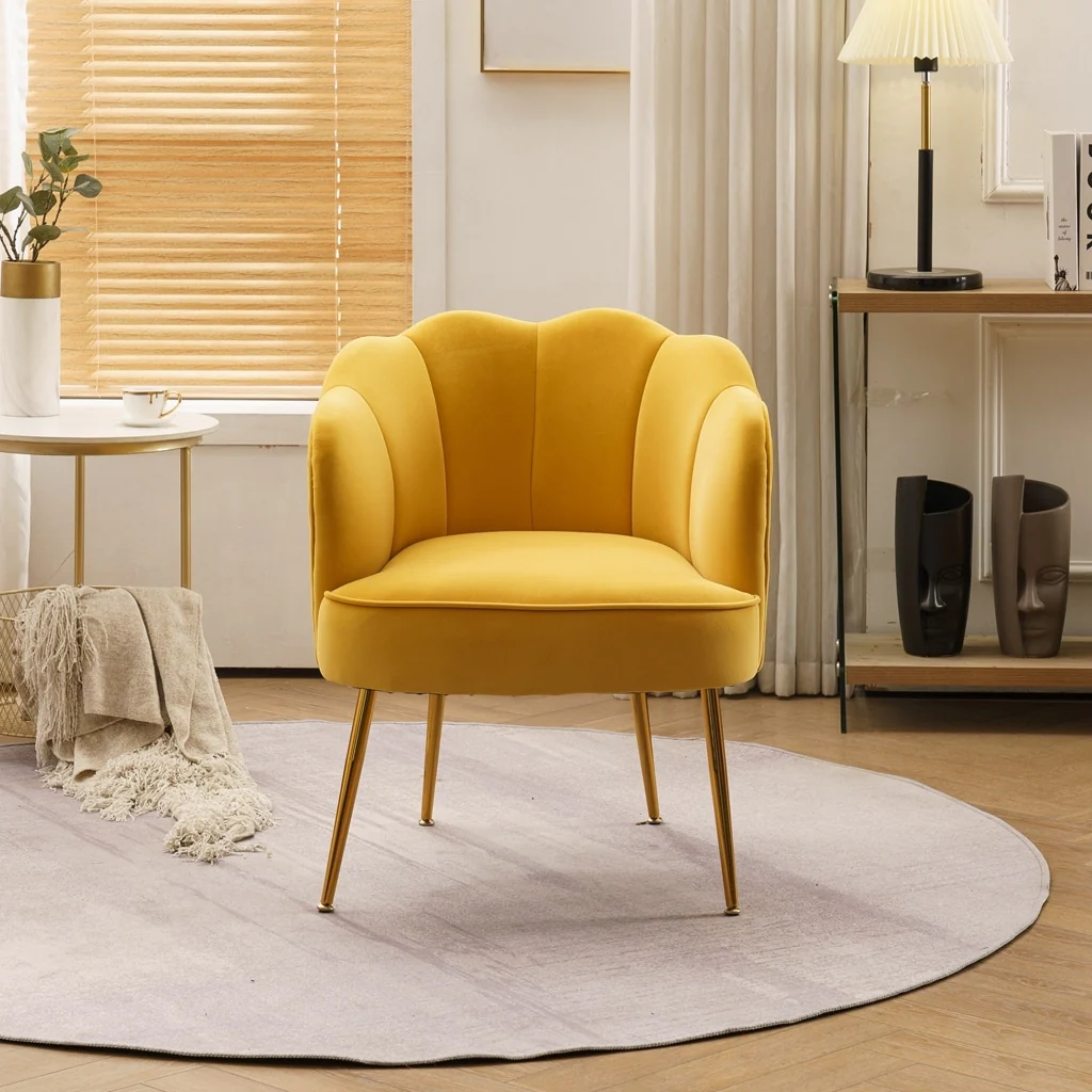 Shell Shape Velvet Fabric Armchair Accent Chair