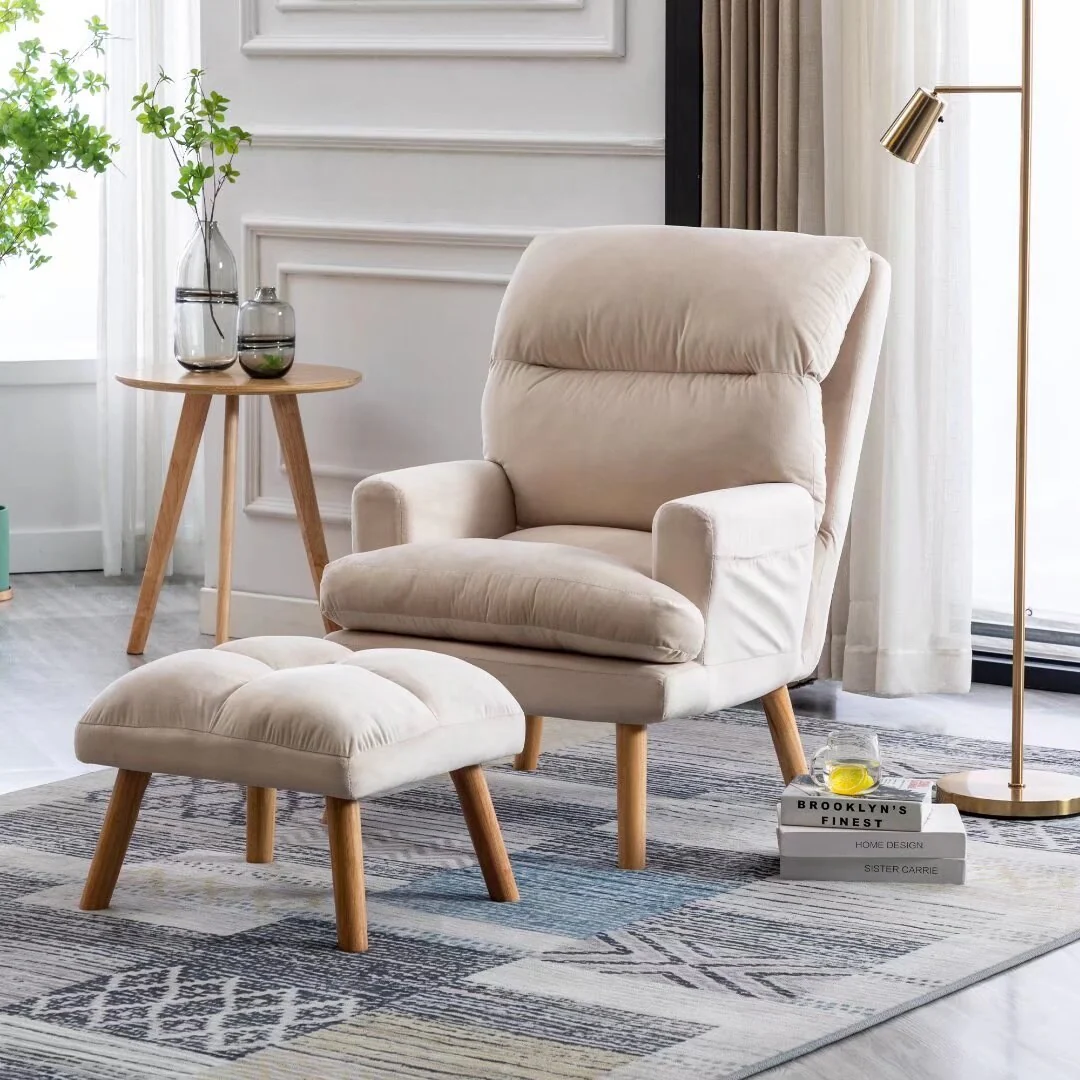 Velvet Fabric Recliner ArmChair and Ottoman Set