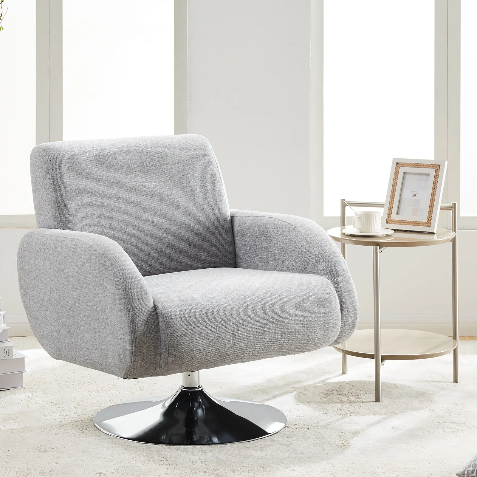 Teddy Fabric Swivel Accent Armchair Barrel Chair
