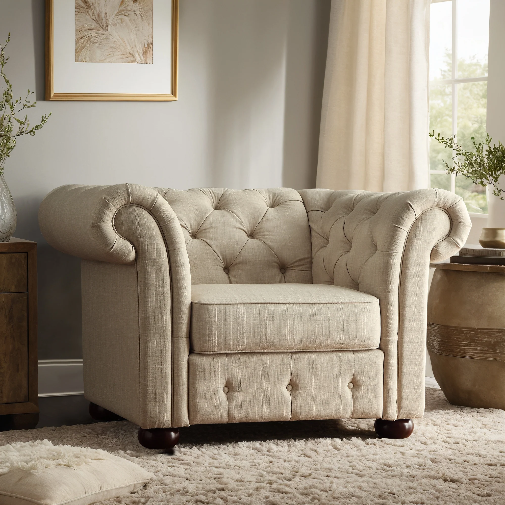 Gdansk Tufted Scroll Arm Chesterfield Chair