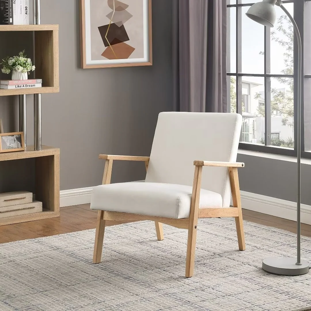 Upholstered Armchair Accent Chair with Solid Wood Legs - 35Wx36Dx37H