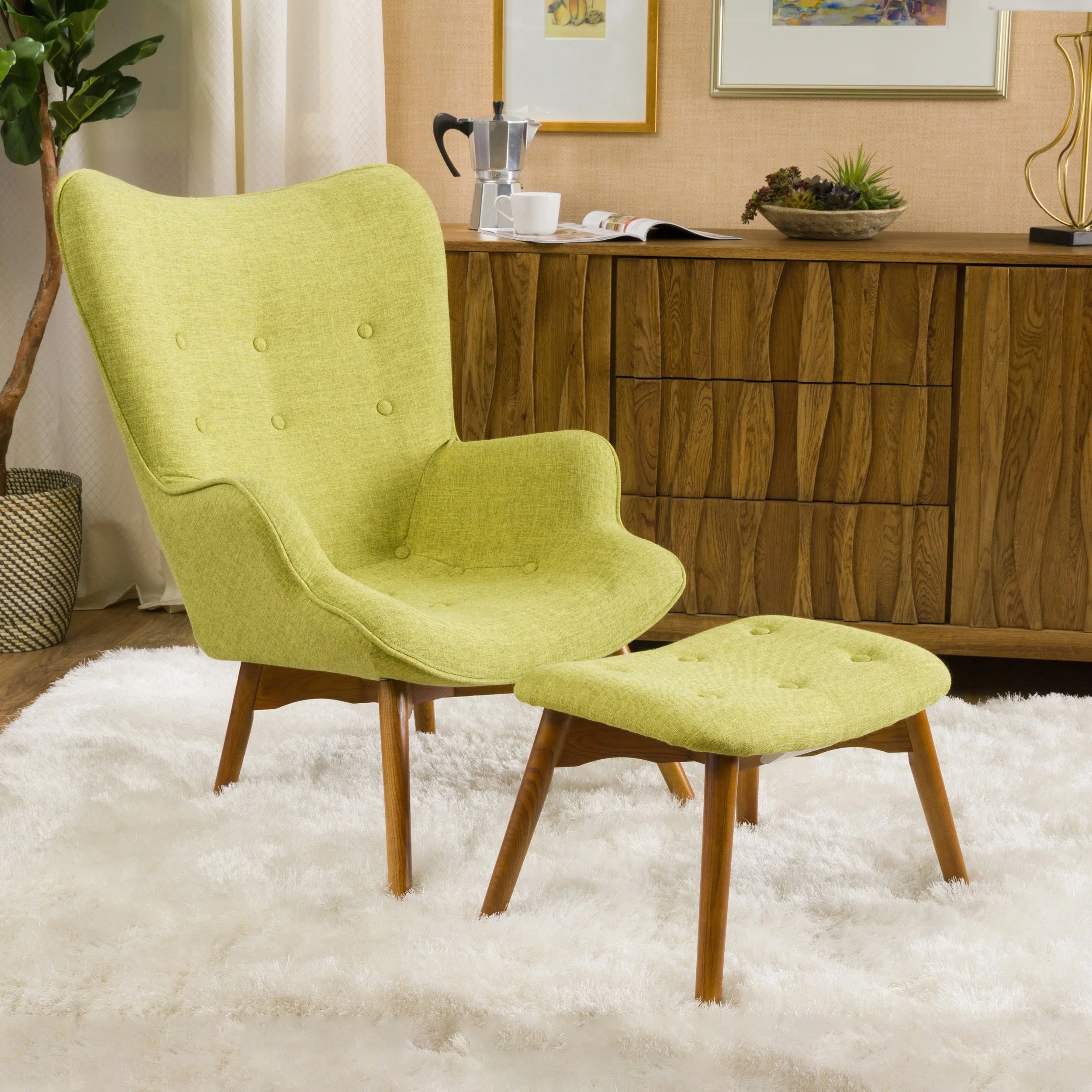 AVAWING Rustic Accent Chair Set with Footrest Tufted Button Back