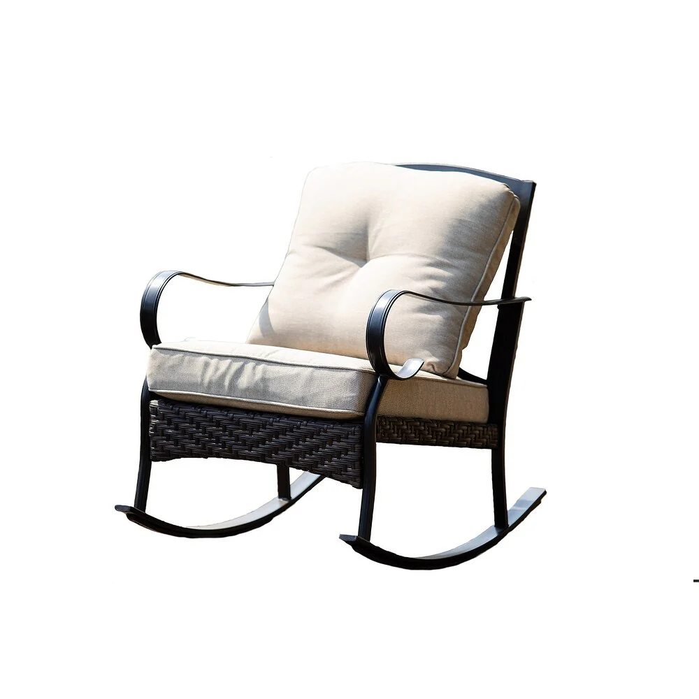 25 X 33 X 34 Black Steel Patio Rocking Chair with Beige Cushions