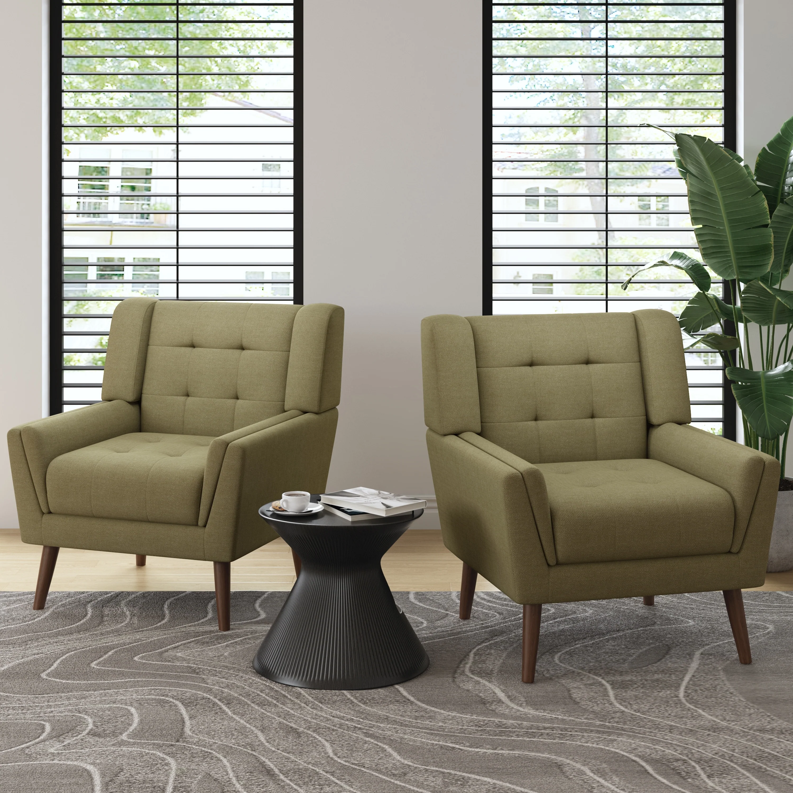 Modern Tufted Accent Chair Linen Armchairs Set of 2