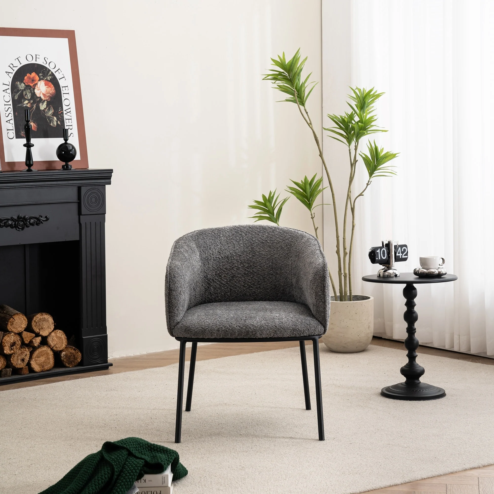 Set of 1 Boucle Upholstered Accent Barrel Armchair