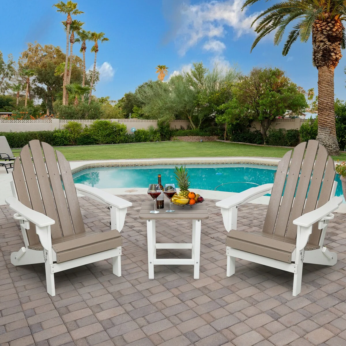 Folding Adirondack Chair with Ottoman and Cup Holder