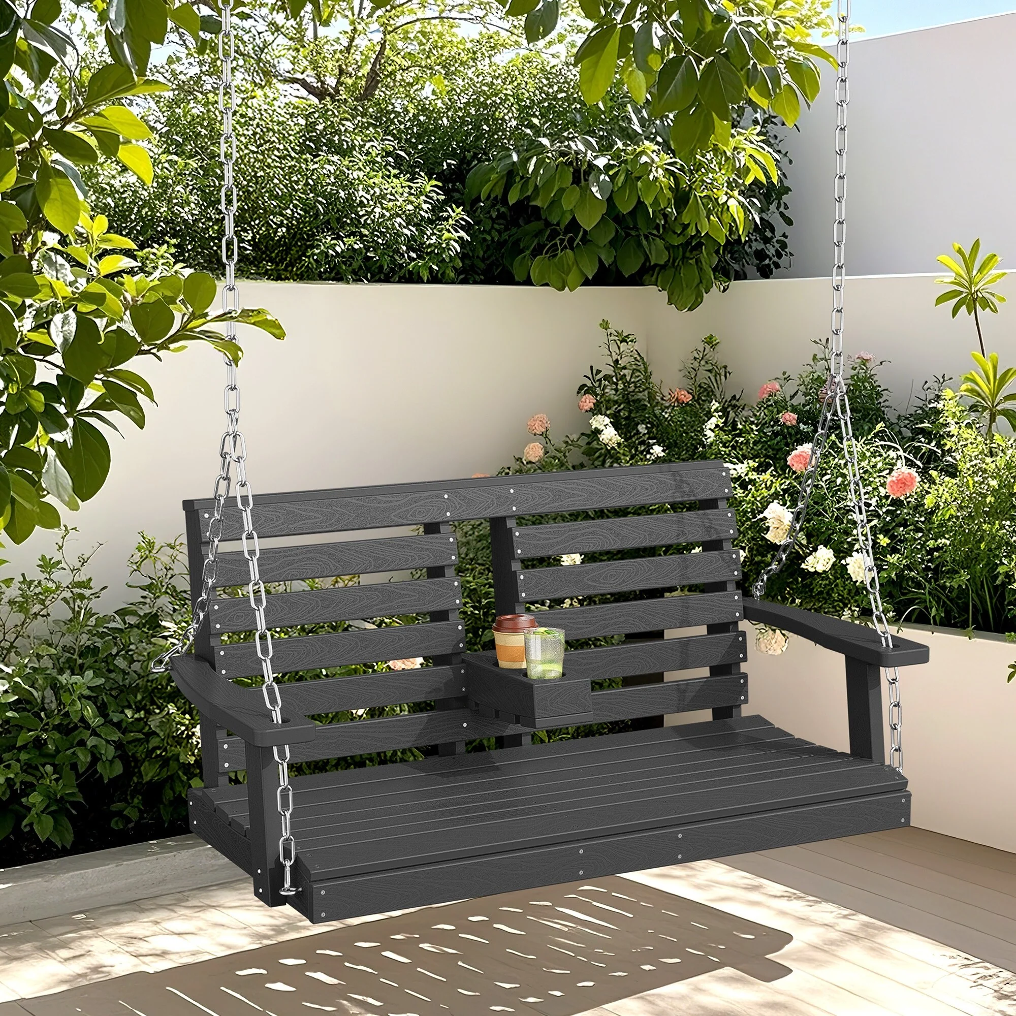 HDPE Plastic Outdoor Porch Swing 2-Person With Chains