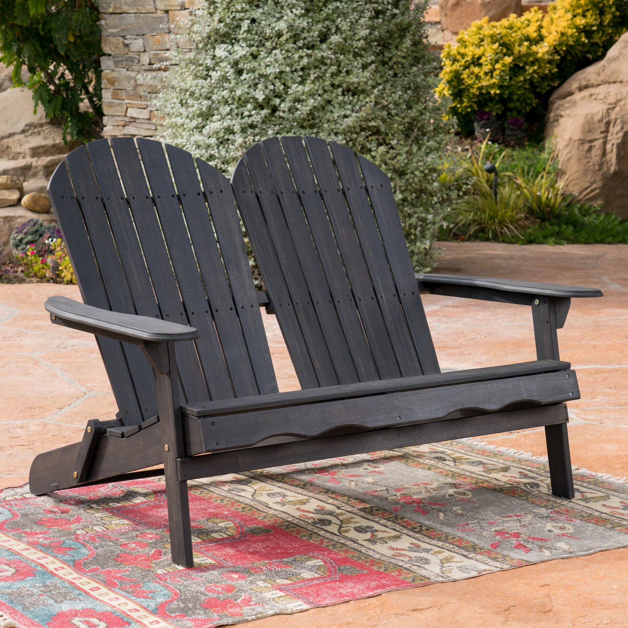 Outdoor Solid Wood Adirondack Loveseat Chair