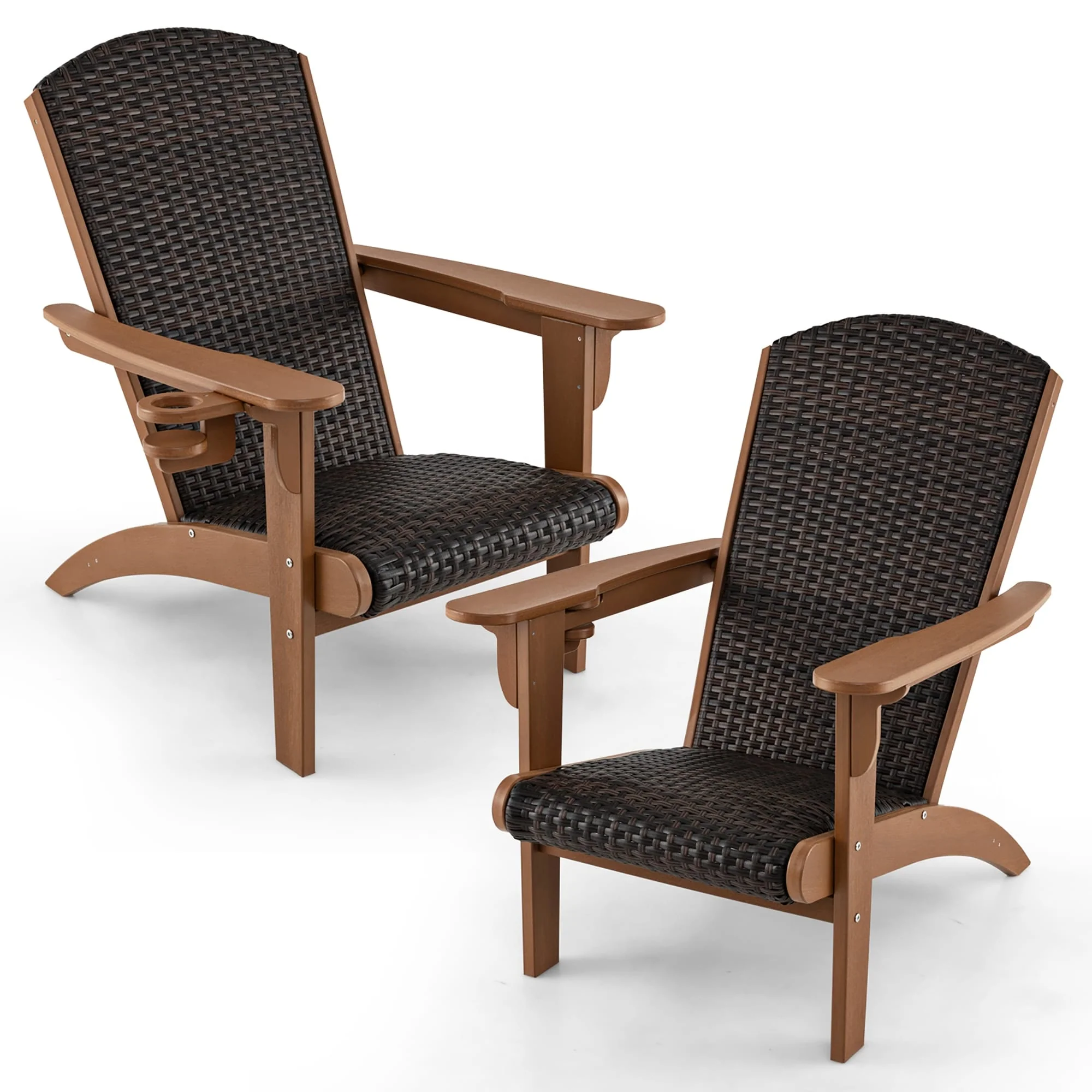 Outdoor Wooden Adirondack Chair with Cup Holder