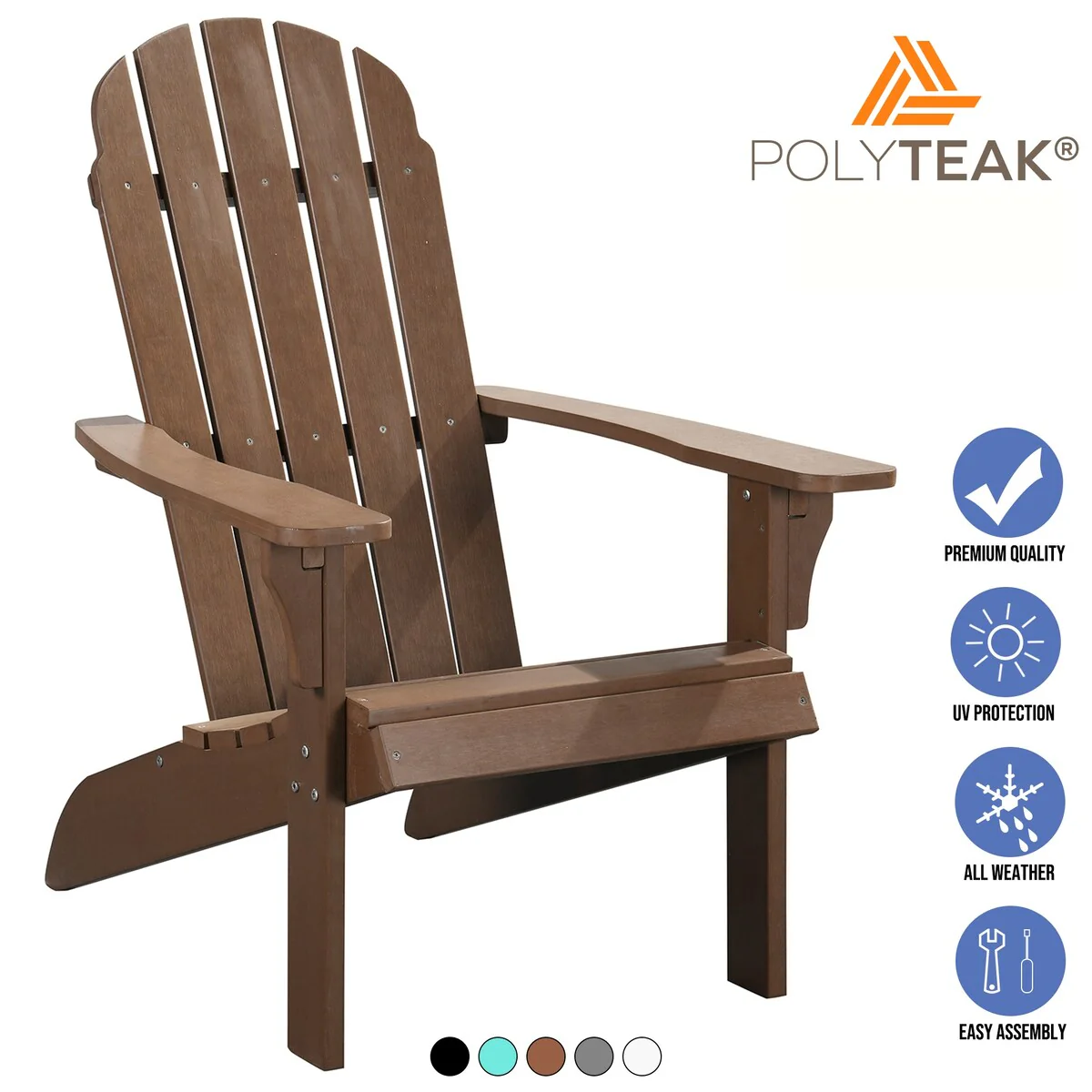 PolyTeak Traditional Adirondack Chair, All Weather Poly Lumber