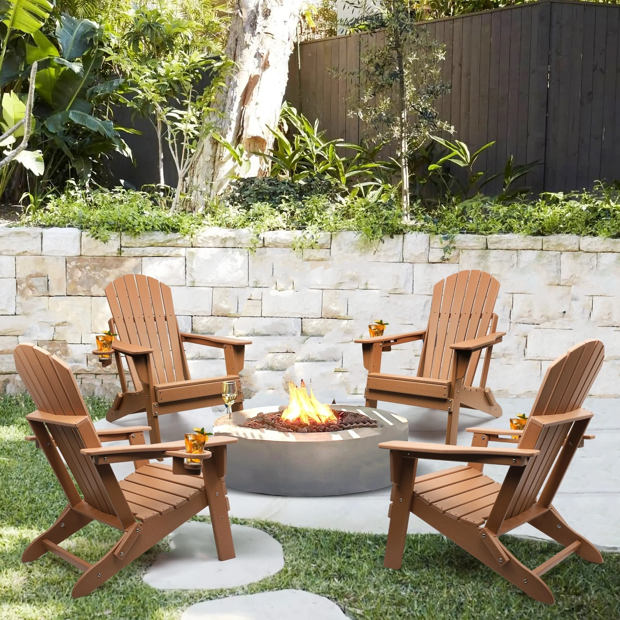 Vrakae Folding Adirondack Chair with Cup Holder Set of 4