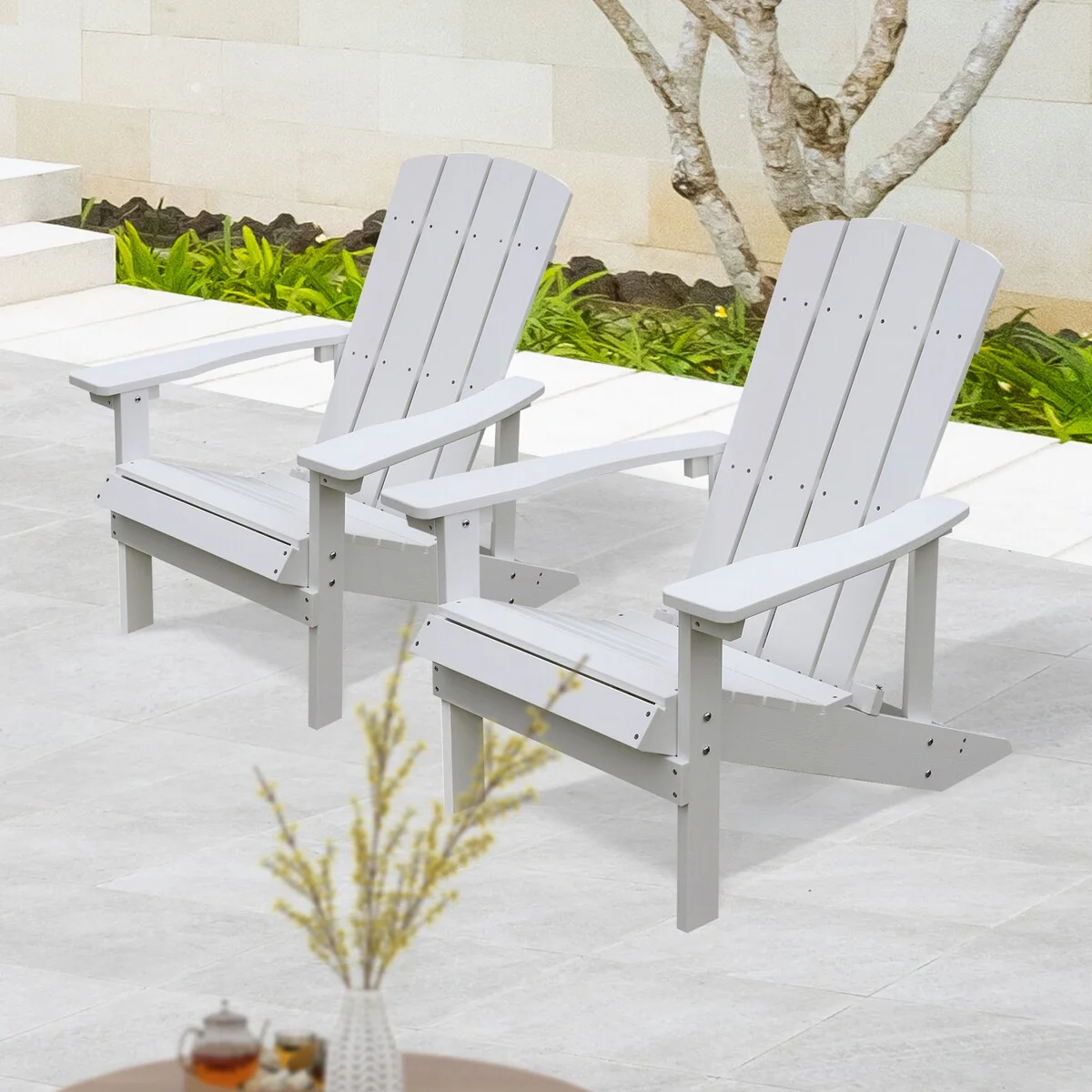 Kamas 2 Piece HDPE Outdoor Traditional Adirondack Chairs