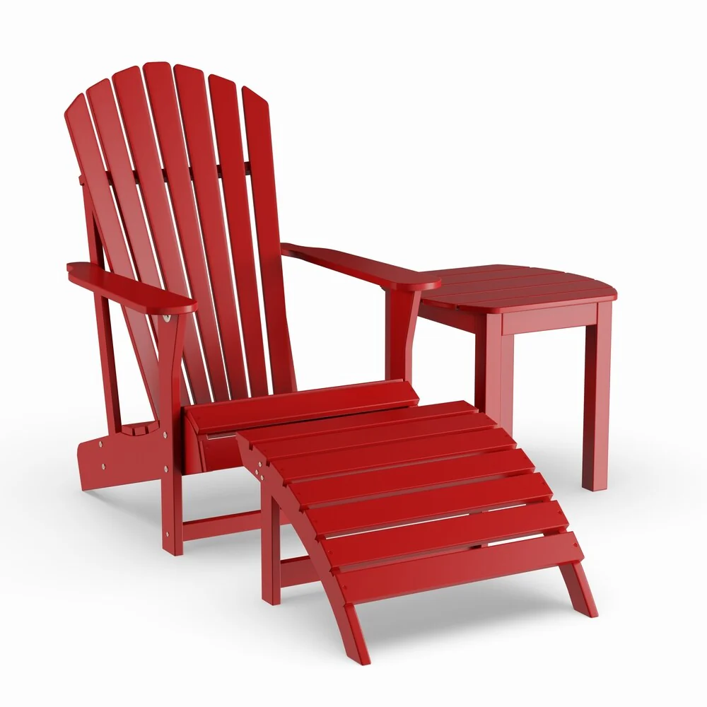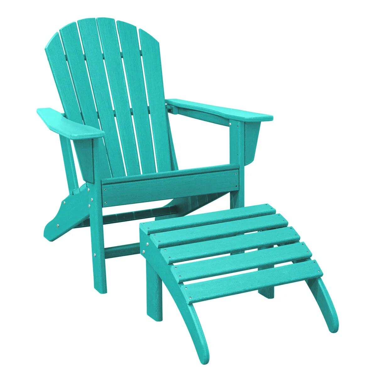 Wooden Adirondack Chair Outdoor Patio Lounge Chair W/ Ottoman