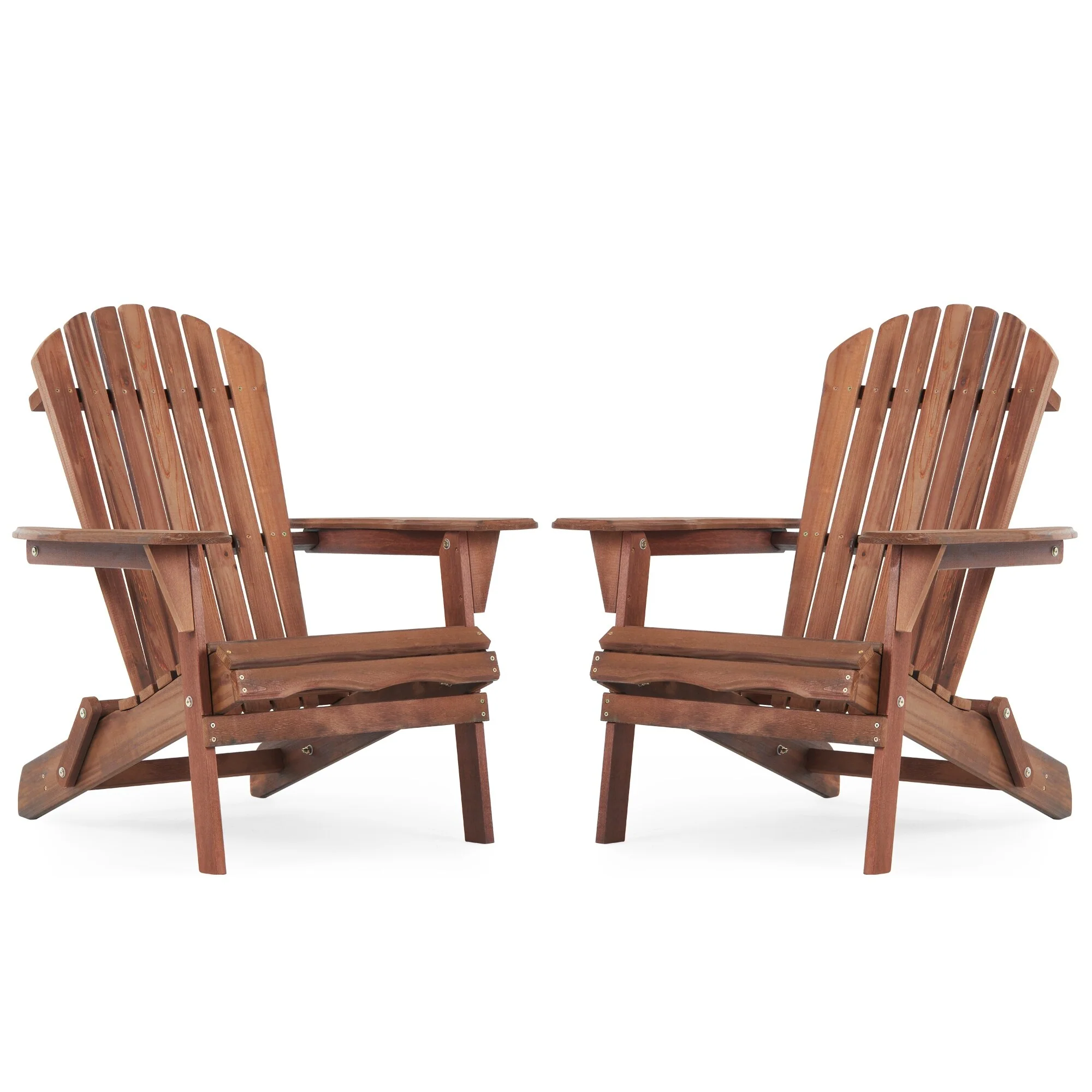 Set of 2, Classic Outdoor Slatted Design Adirondack Chair
