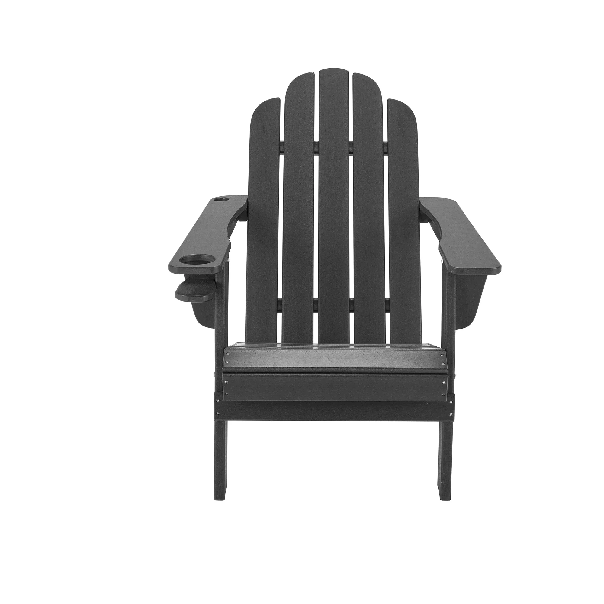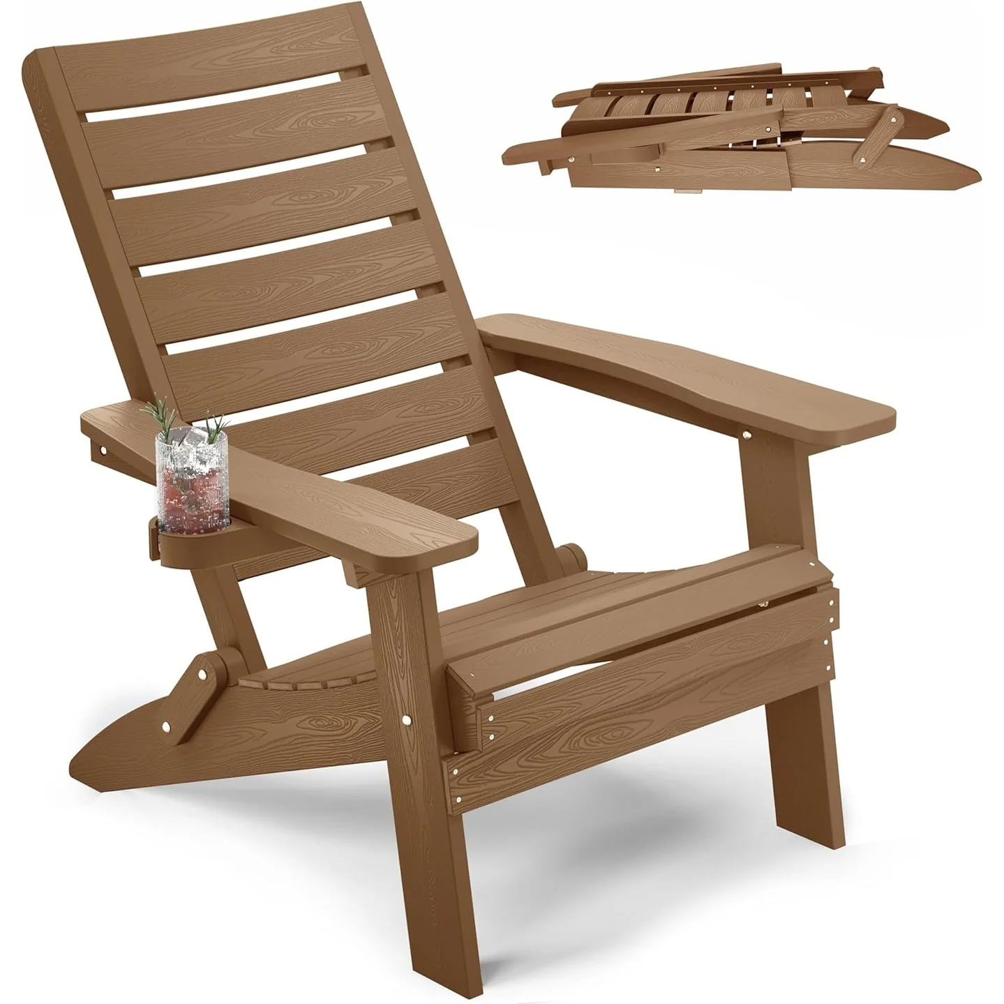 Outdoor Wood Folding Adirondack Chair With Cup Holder