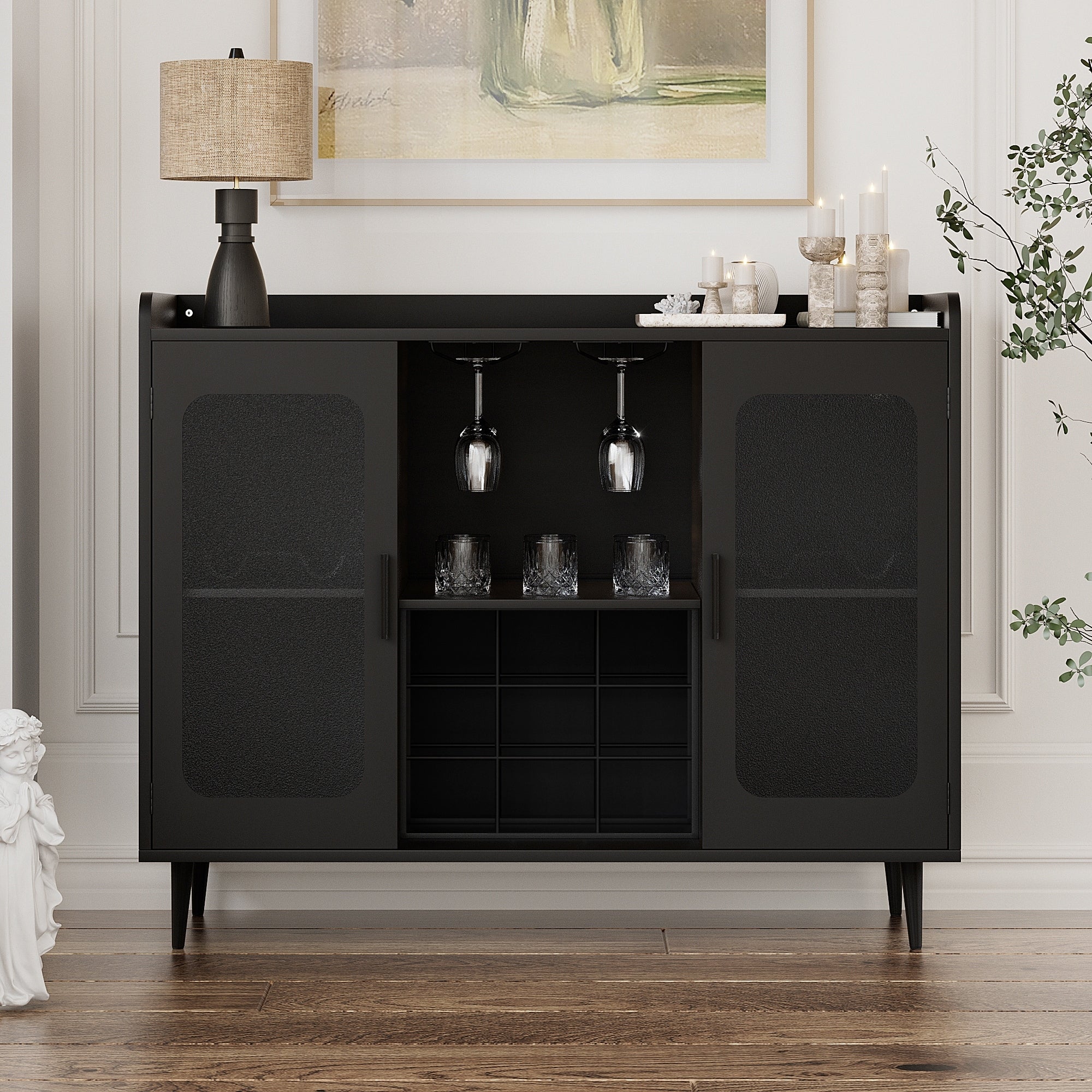 Modern Farmhouse Bar Cabinet with Charge Station and LED Light