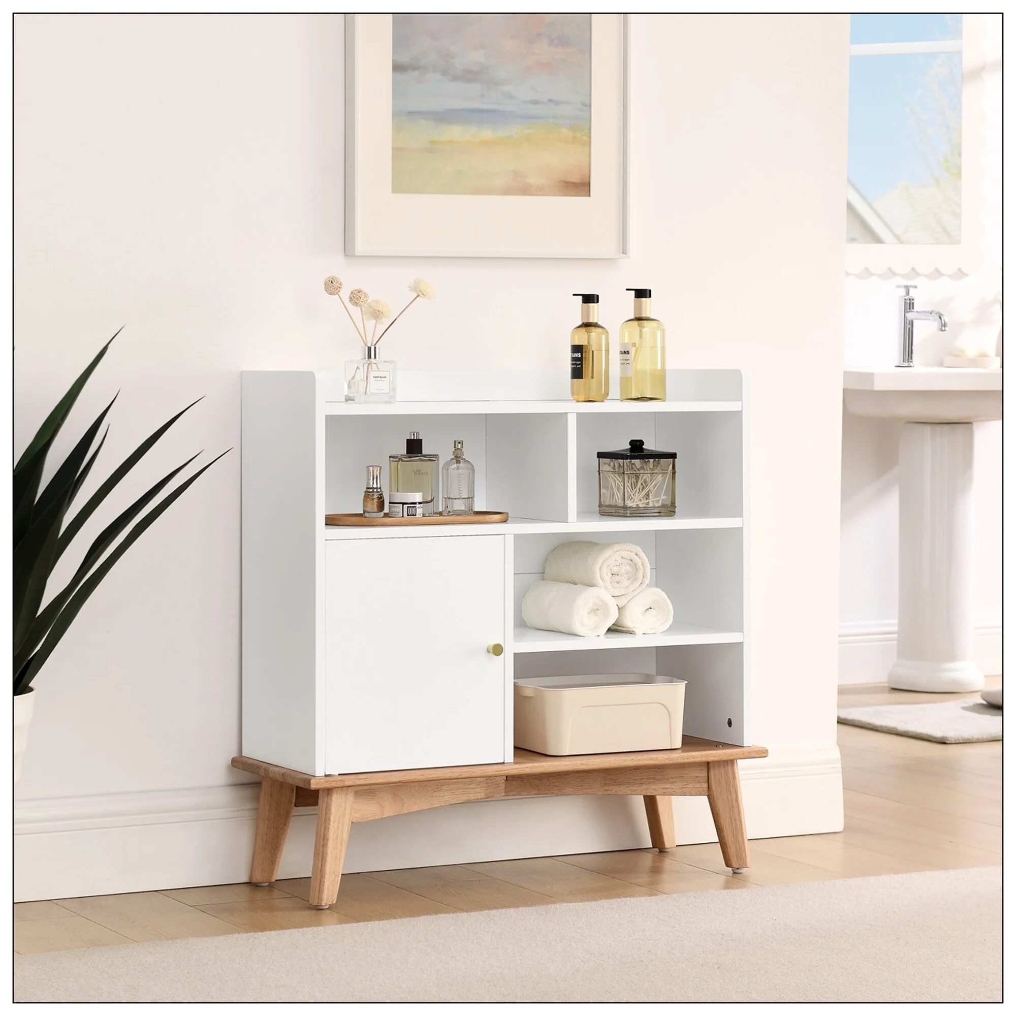 Colorblocking Storage Cabinet with Solid Wood Base