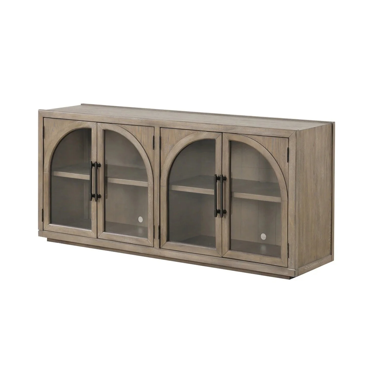 4 Doors Wooden and Glass Server with Adjustable Shelves in Oak