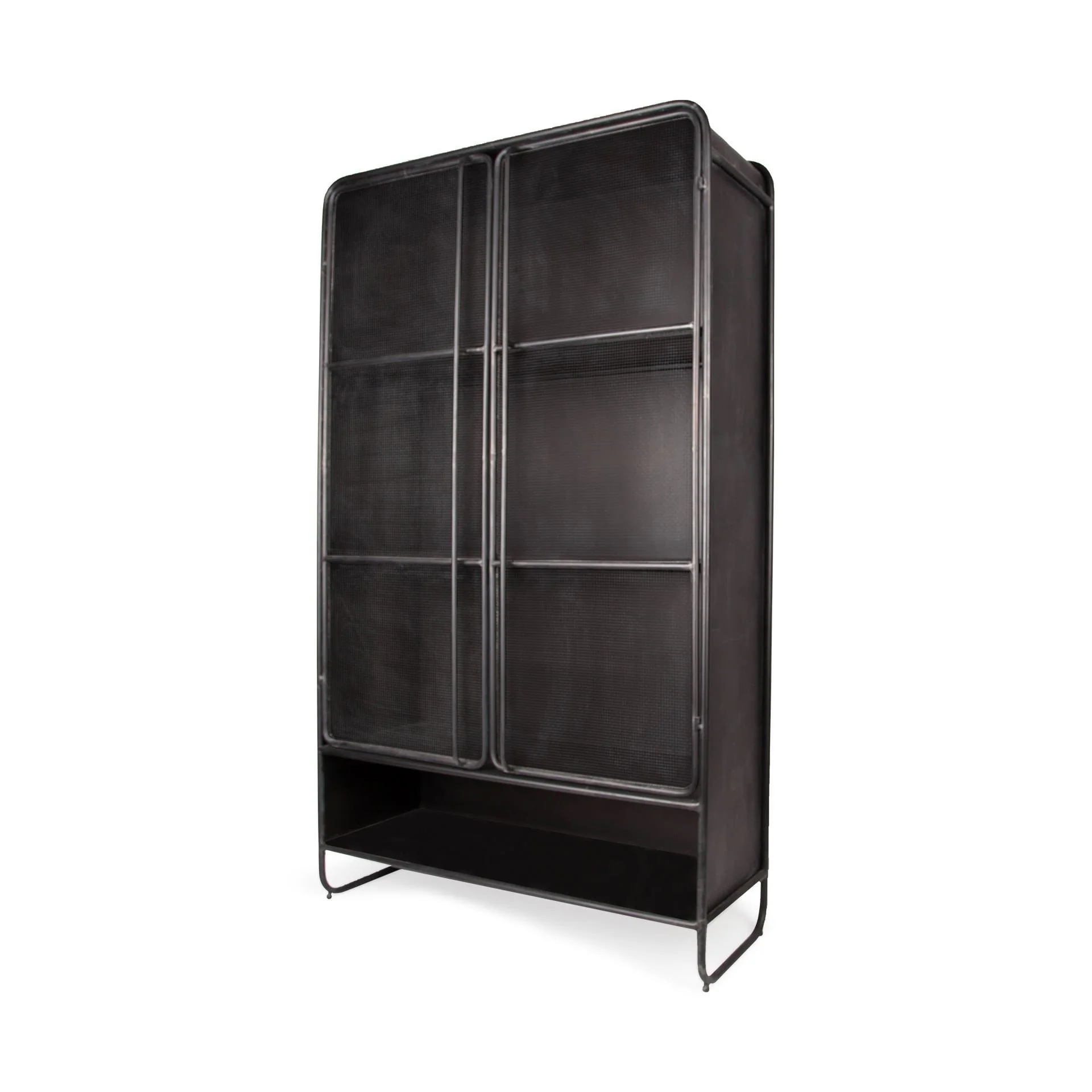 Klaus Dark Brown Polished Metal w/ Mesh Doors Display Cabinet