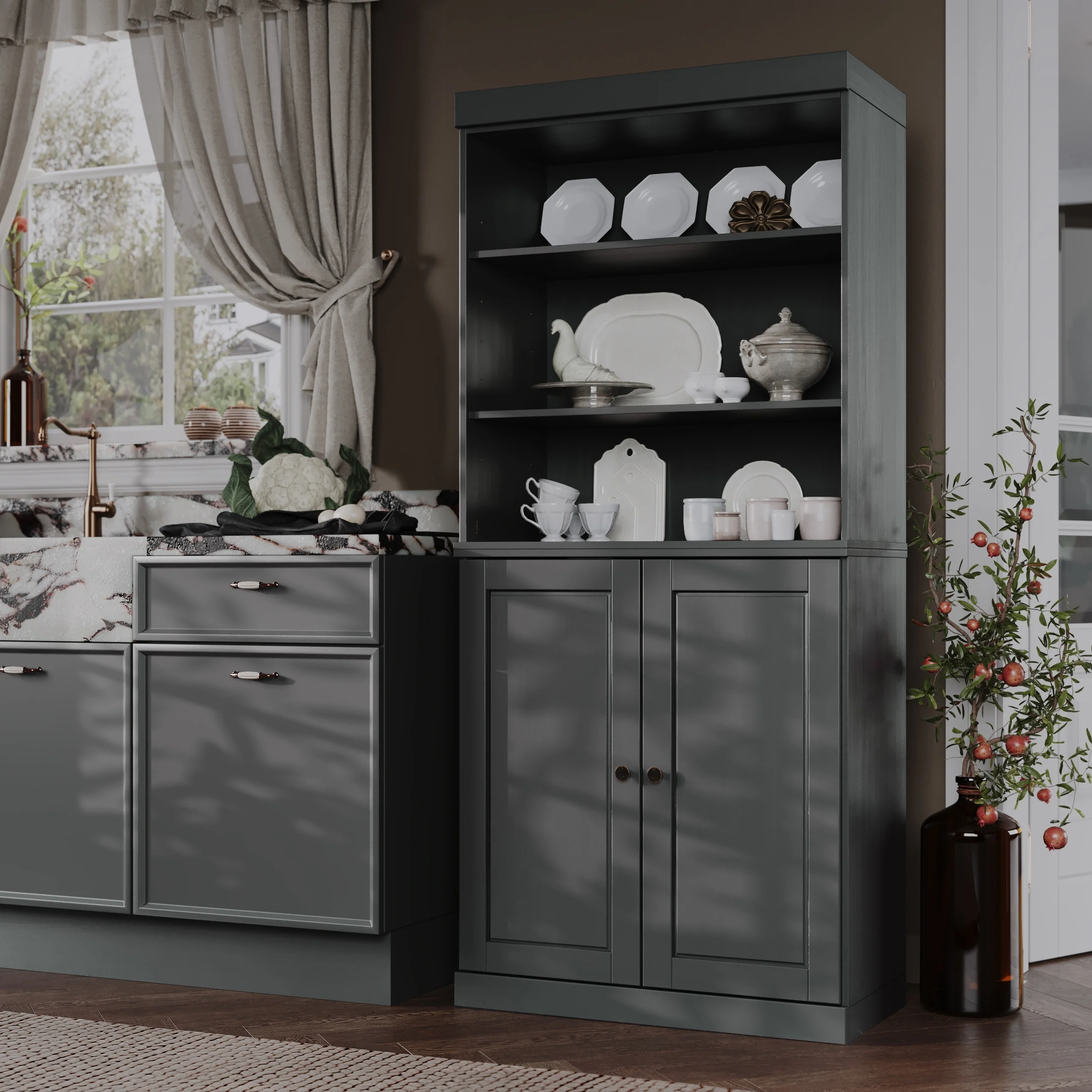 Crosley Stanton 3Pc Sideboard And Glass Door Pantry Set - 14.5x95x78