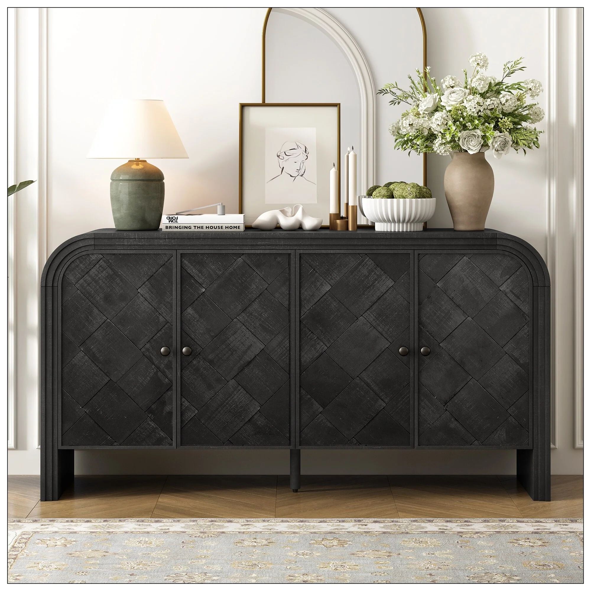 60 Press-to-Open Design Sideboard Buffet Cabinet with 4 Doors