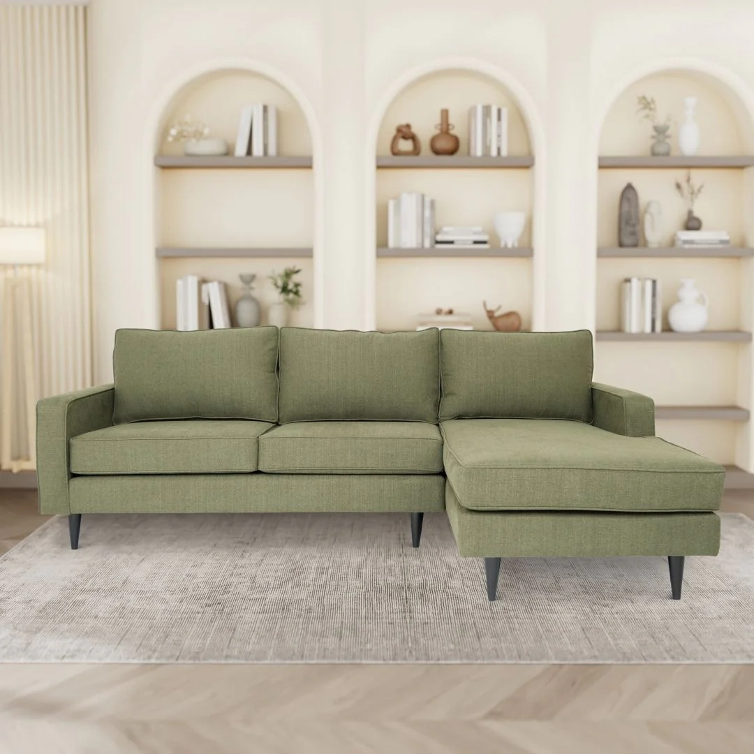 Retro Style Large Sectional Sofa with Wooden Legs