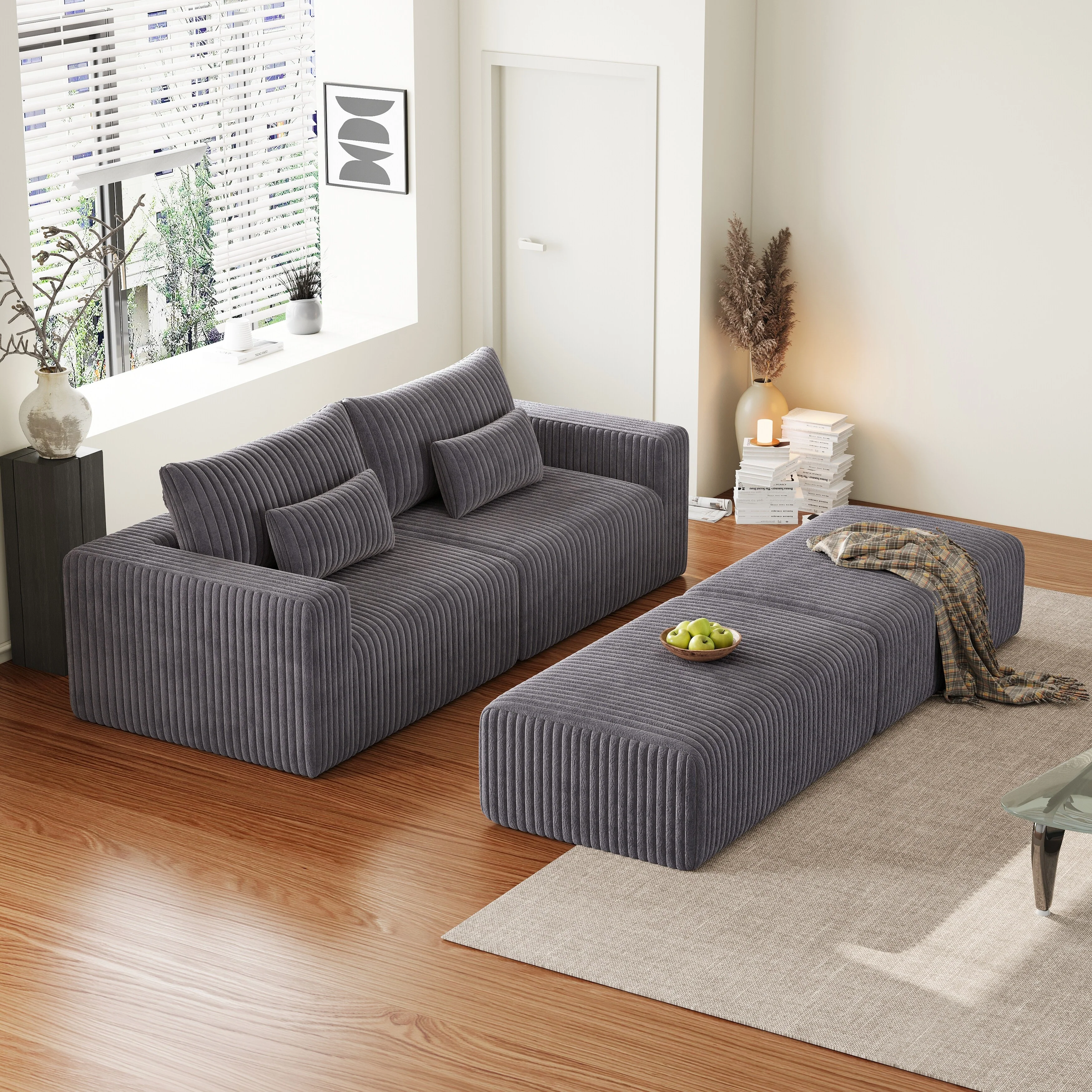GDFStudio- Ravenscroft Corduroy Modular Sofa With Storage Ottoman