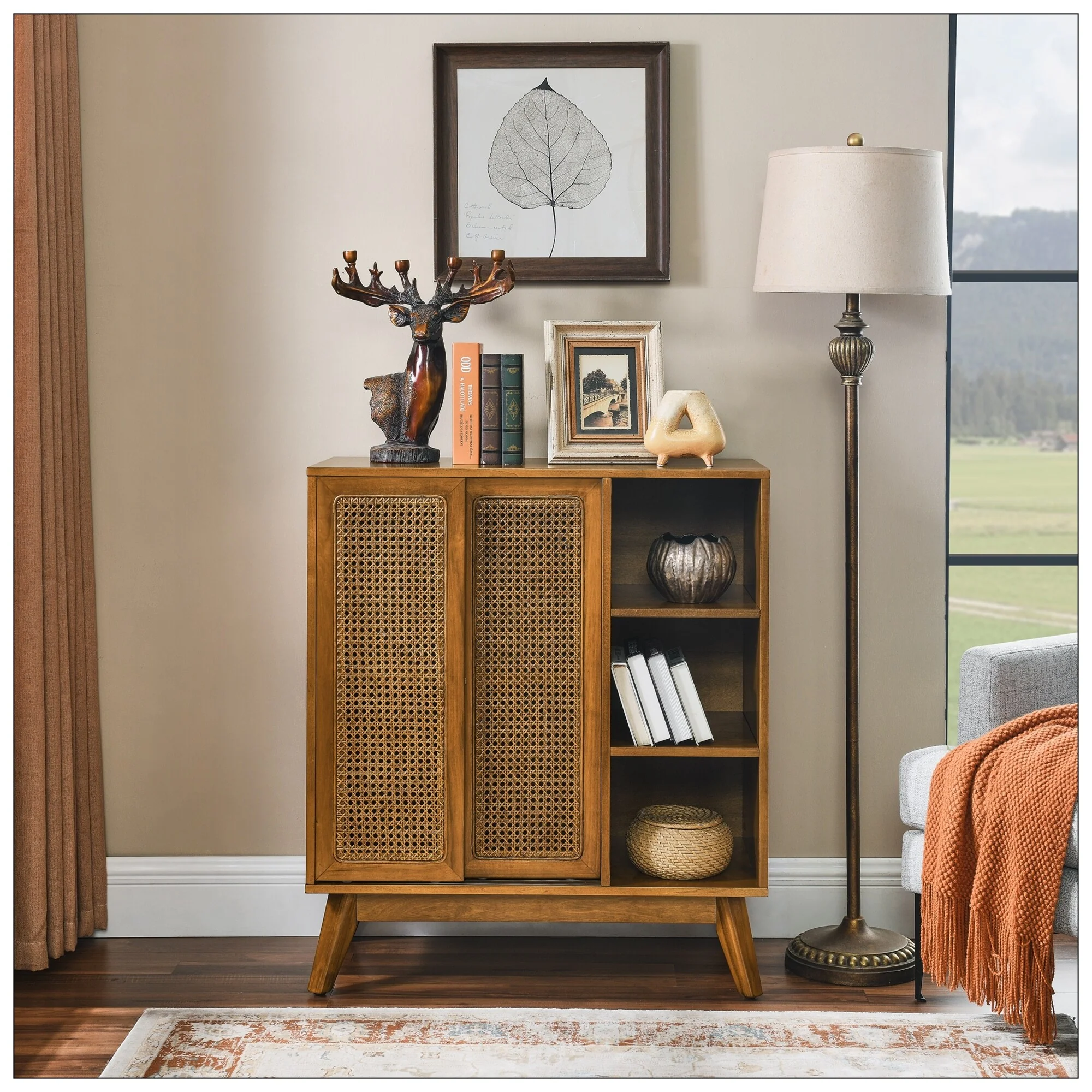 Mid Century Modern Rattan Sideboard Cabinet