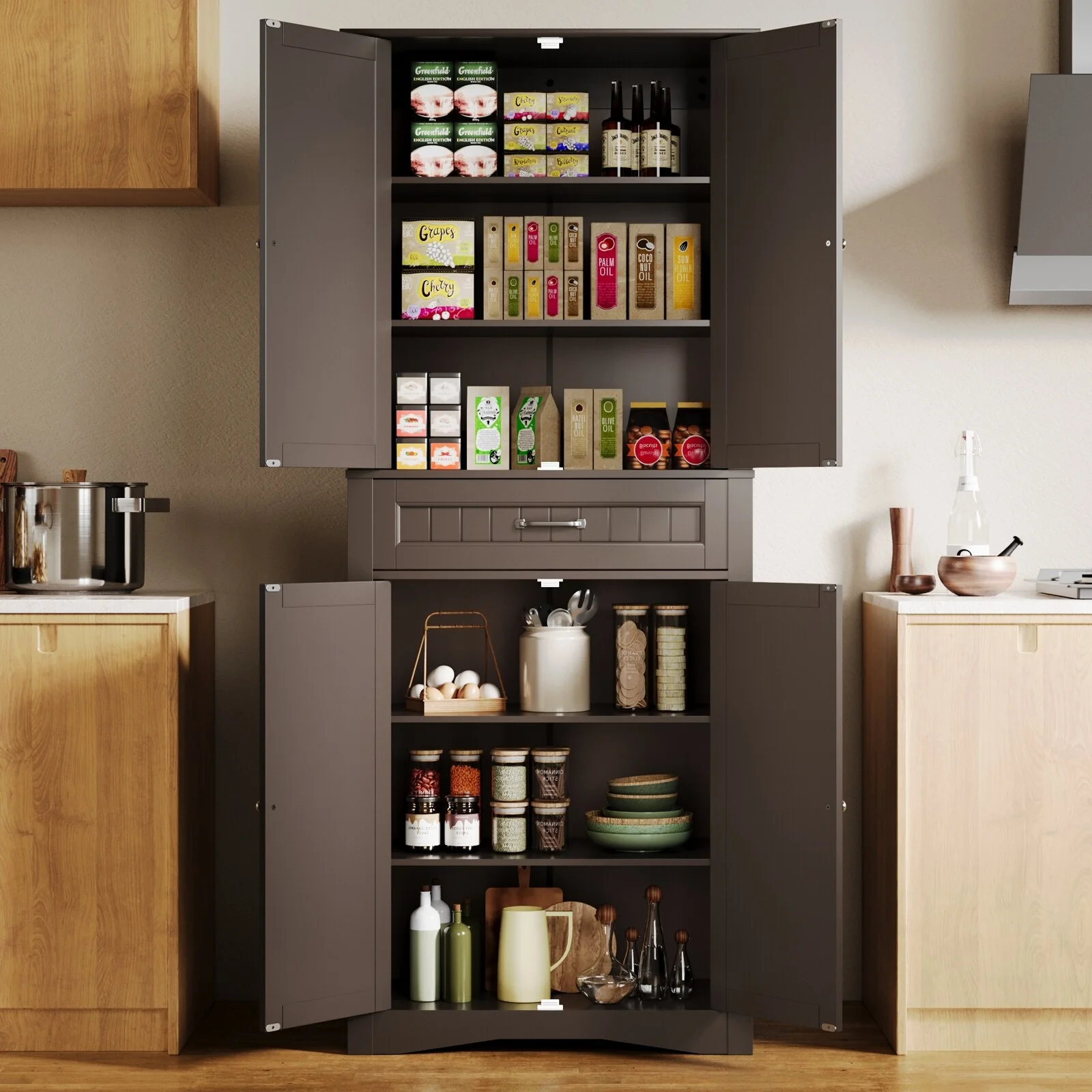 3 Drawers and 2 Doors Wooden Server in Espresso