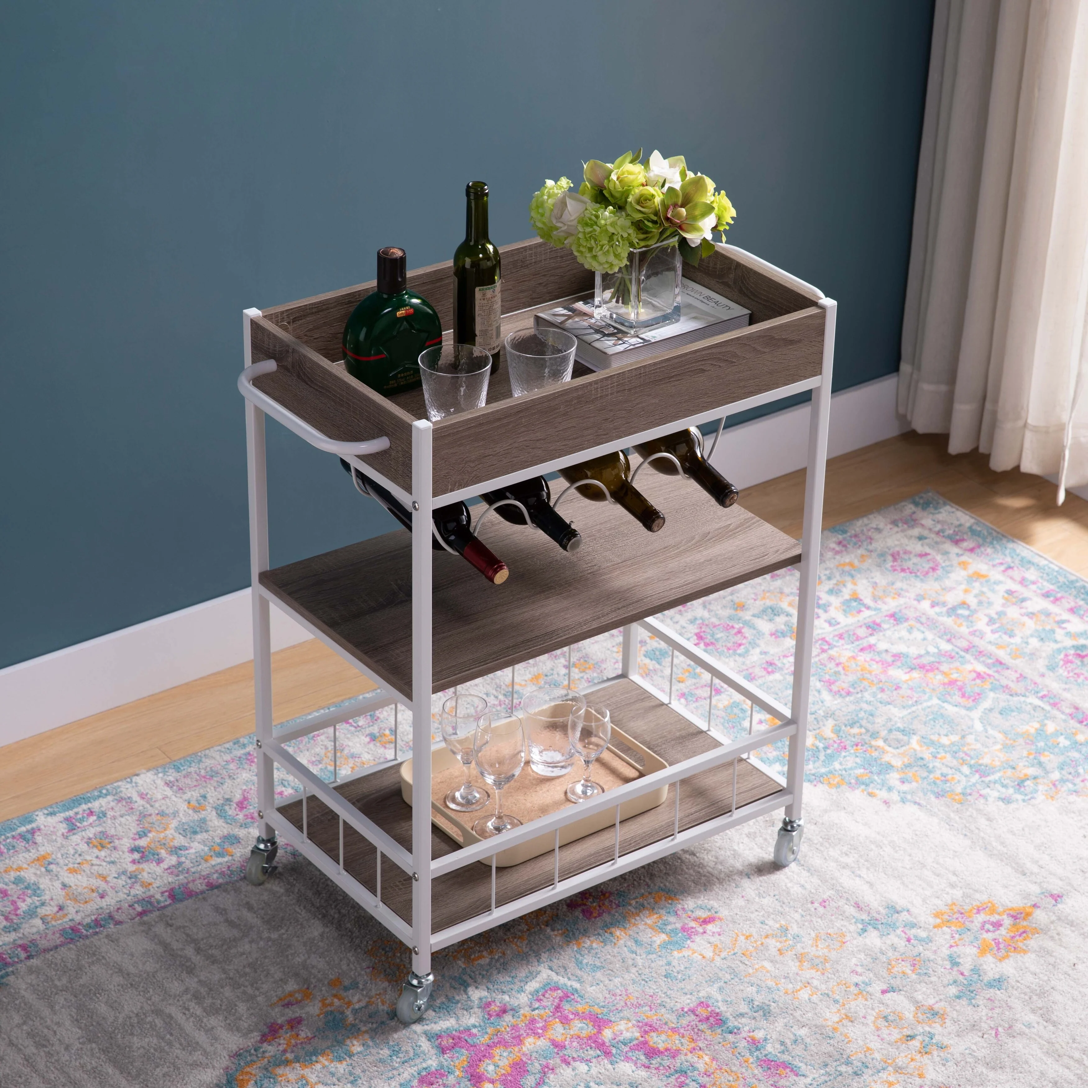 Kitchen Cart with Three Tier Storage and Four Wine Bottle Rack