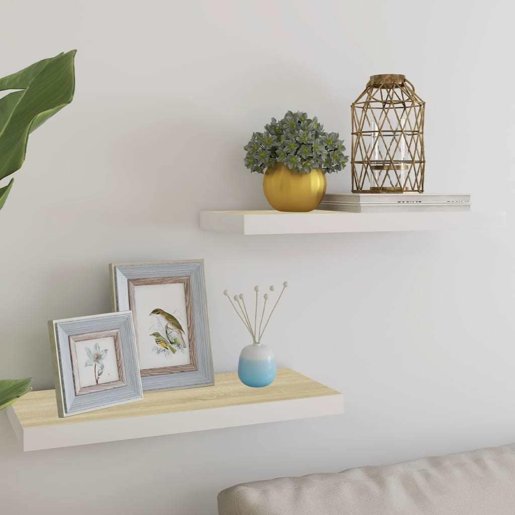 White Washed Wooden Floating Wall Shelves - 30.25 - Set of 2