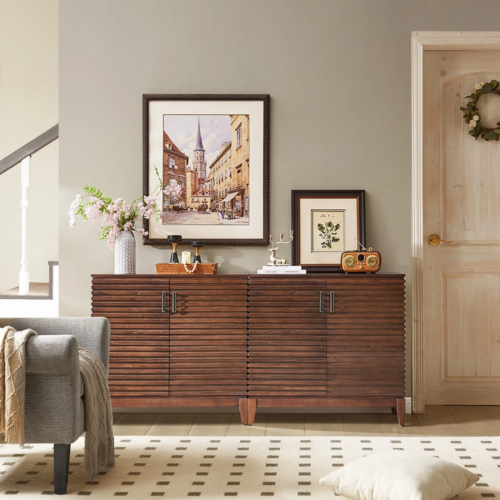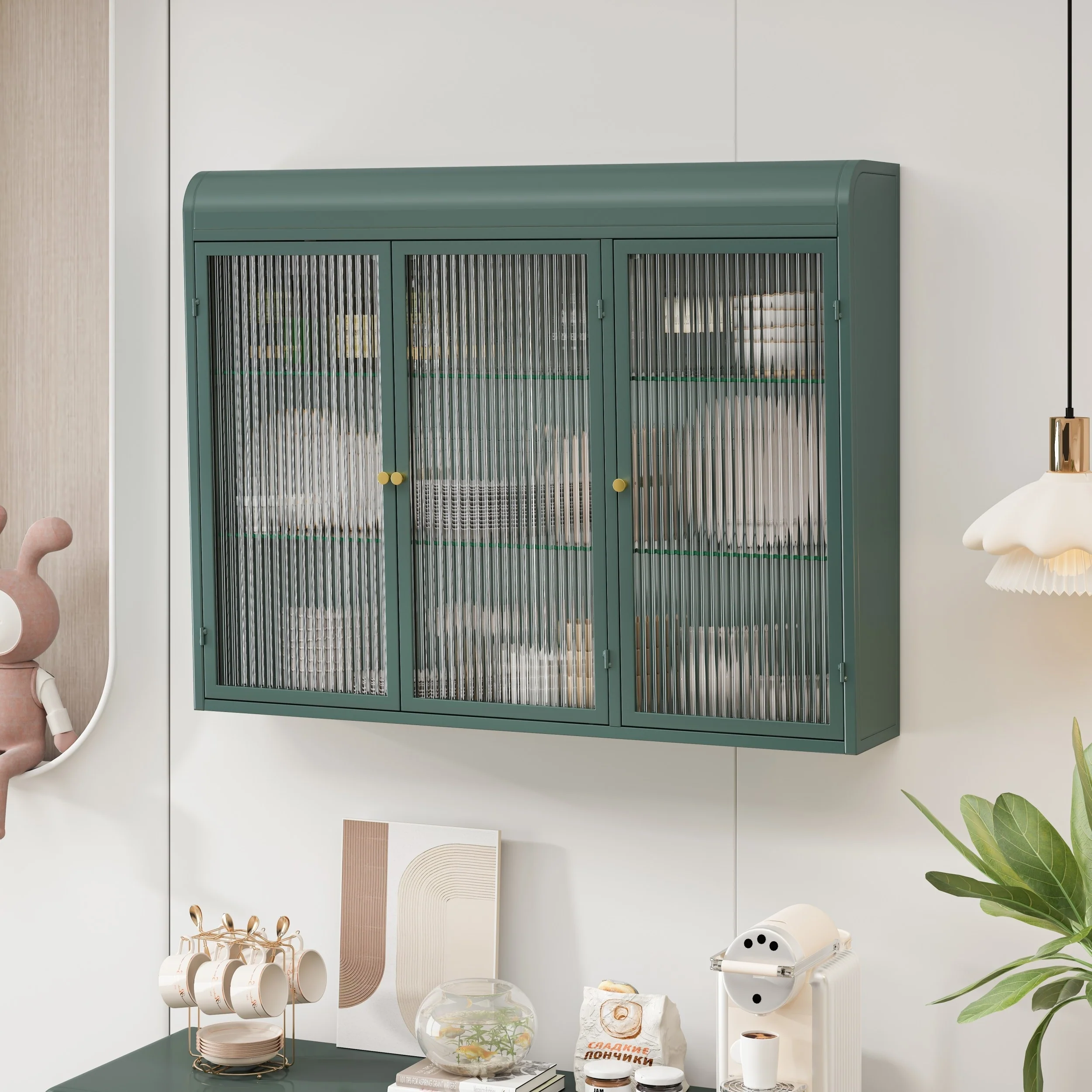 Modern Minimalist 3 Door Arched Wall Mounted Glass Cabinet